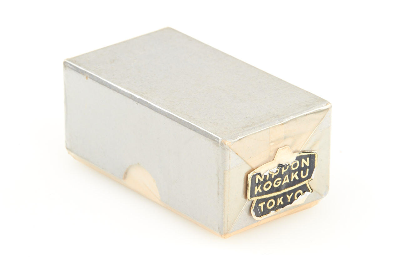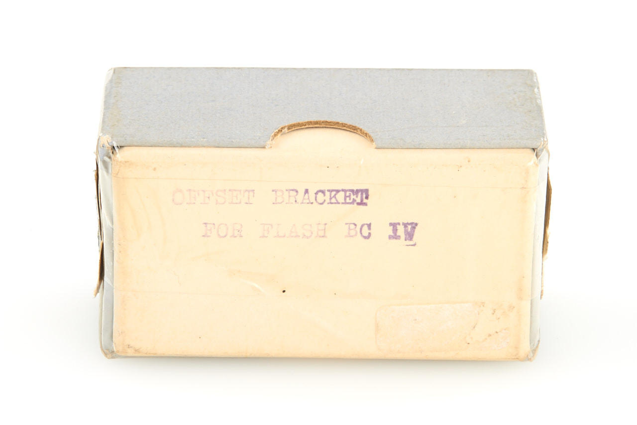 first version of this very rare Nikon rangefinder accessory to use a BC IV flash gun together with an auxiliary finder on a Nikon S, in absolutely mint condition, marked with ‚Nippon Kogaku‘, comes in early grey coloured maker’s box and still foil-sealed and never opened