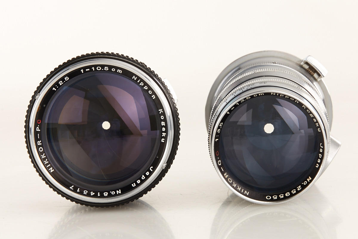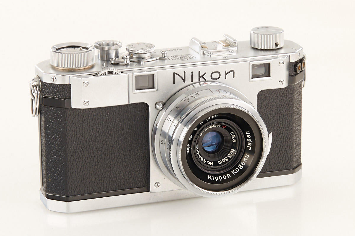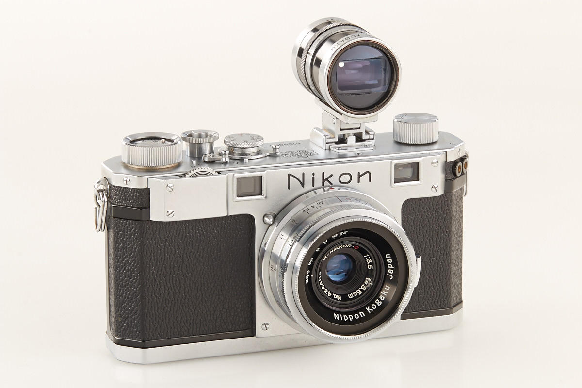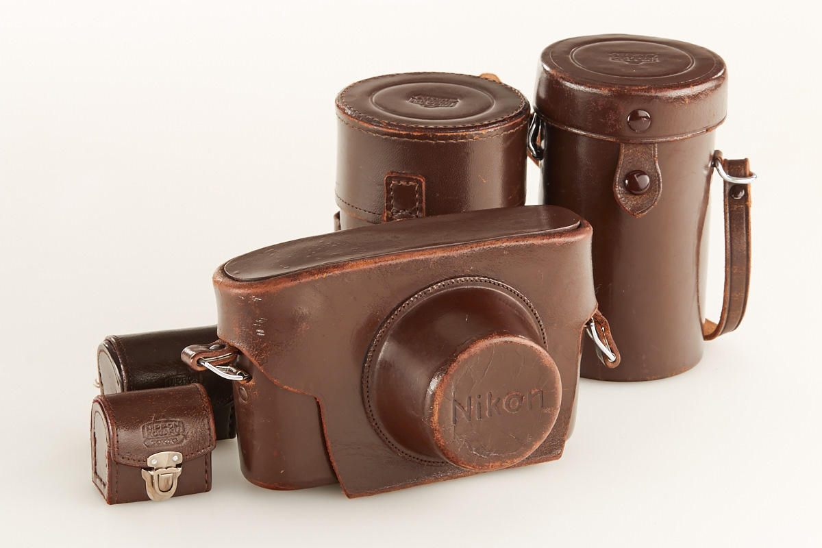 George Rodger was an English photo-journalist who, having covered the Second World War, became one of the founder members of Magnum, along with Robert Capa, Chim and Henri Cartier-Bresson. Magnum assigned him to Africa, where he produced some of his best-known pictures. His personal Nikon rangefinder outfit includes: Nikon S no.6109836, W-Nikkor.C 3.5/3.5cm no.434465, Nikkor-P.C 2.5/10.5cm no.814317 with hood + 10.5cm finder, Nikkor-Q.C 3.5/13.5cm no.259550 with hood, cases, caps - the outfit is in fine condition. It comes with the original leather outfit case stamped 'George Rodger' on the exterior, inside a printed paper label inscribed George Rodger, Magnum Photos 125, Faubourg S'-Honore Paris-8 (France), the outside of the case has travel labels from his journeys to Africa and the USA.