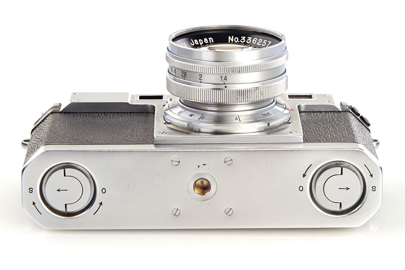 with black sync contacts and 'EP' - engraving, in excellent condition, with near mint Nikkor-S.C 1.4/5cm no.336257, lens cap