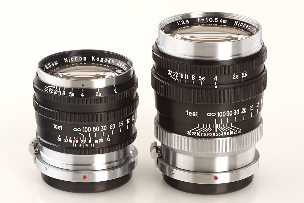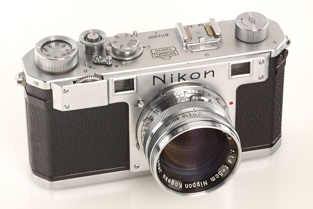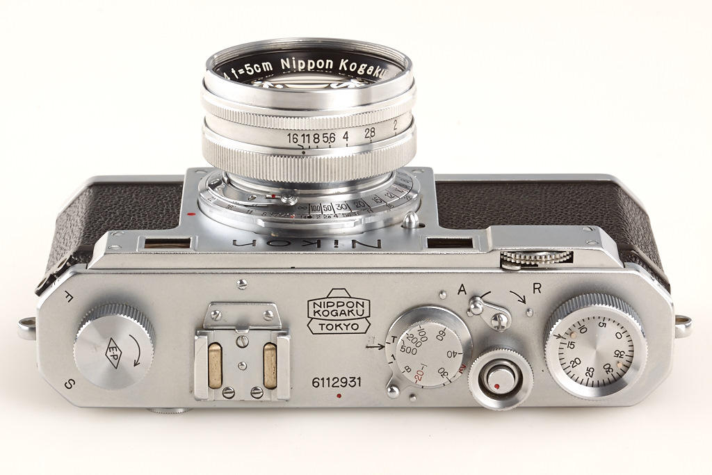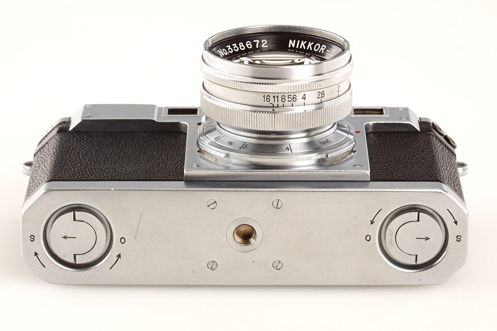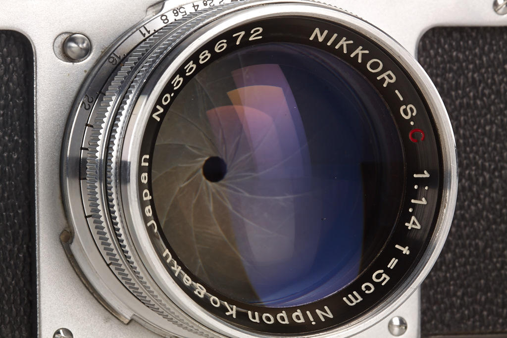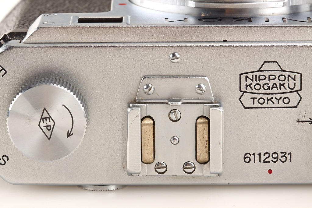 body in fine condition ('E-P' engraved) with three matching lenses, Nikkor-S.C 1.4/5cm no.338672 (cap), mint black/chrome Nikkor-P.C 2/8.5cm no.496536 ('E-P' engraved, hood, caps), near mint black/chrome Nikkor-P.C 2.5/10.5cm no.913838 (hood, caps), Nikon Flash Unit B.C.B. like new and complete with papers in maker's box - ex Tad sato collection