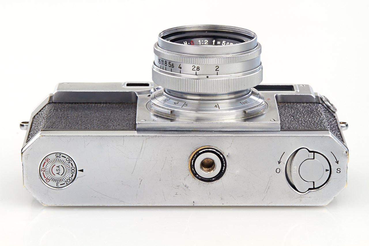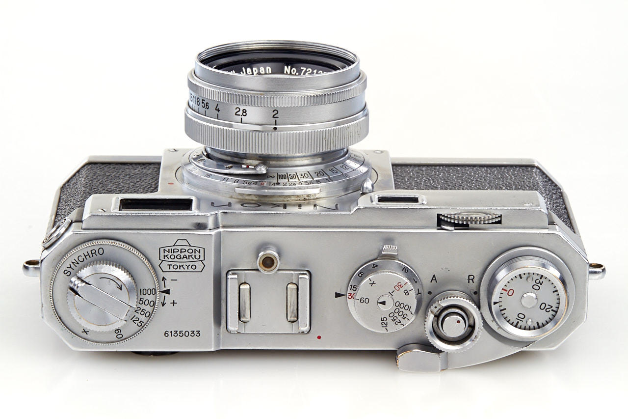 Extremely rare camera, on the rear engraved "SAMPLE". It is the 33th S2 camera produced and one of the most earliest known to exist. Rotoloni shows in 'The Complete Nikon Rangefinder System' page 107 camera no.6135019 with the same 'SAMPLE' engraving and believes it is one of the 10 cameras shown at the introduction of the new S2 in New York on December 10th 1954. The camera is different to the production models: the rangefinder view shows four cross markings within the bright-line, the pressure plate is much shorter and the back cover looks uncommon inside. The camera is in fully working and excellent condition, with Nikkor-H.C 2/5cm no. 721258, with clear and clean glass.