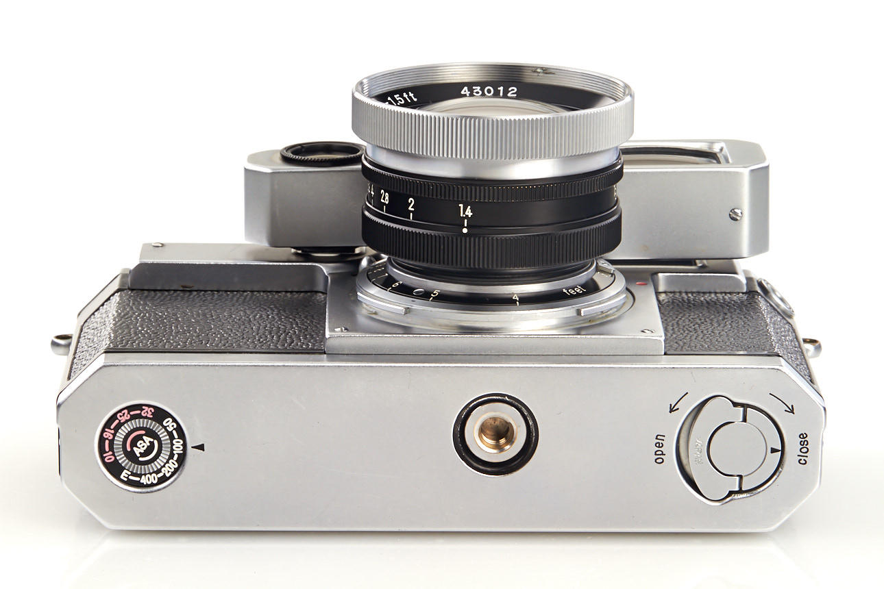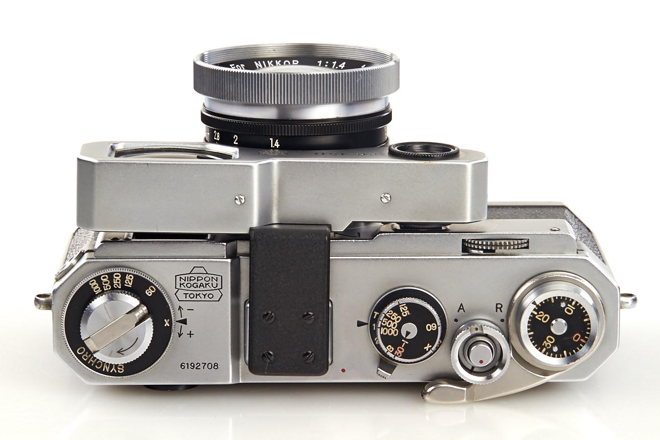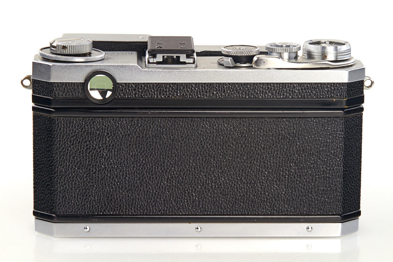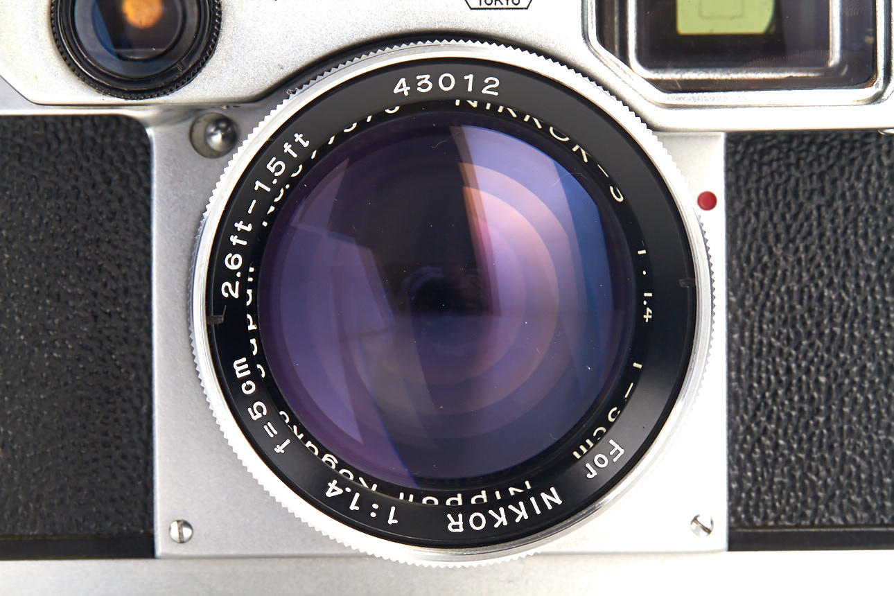 black scale camera in excellent condition and perfect working order, titanium shutter, with mint Nikkor-S 1.4/5cm no.399576, close-up attachment with goggles for 2.6-1.5 feet