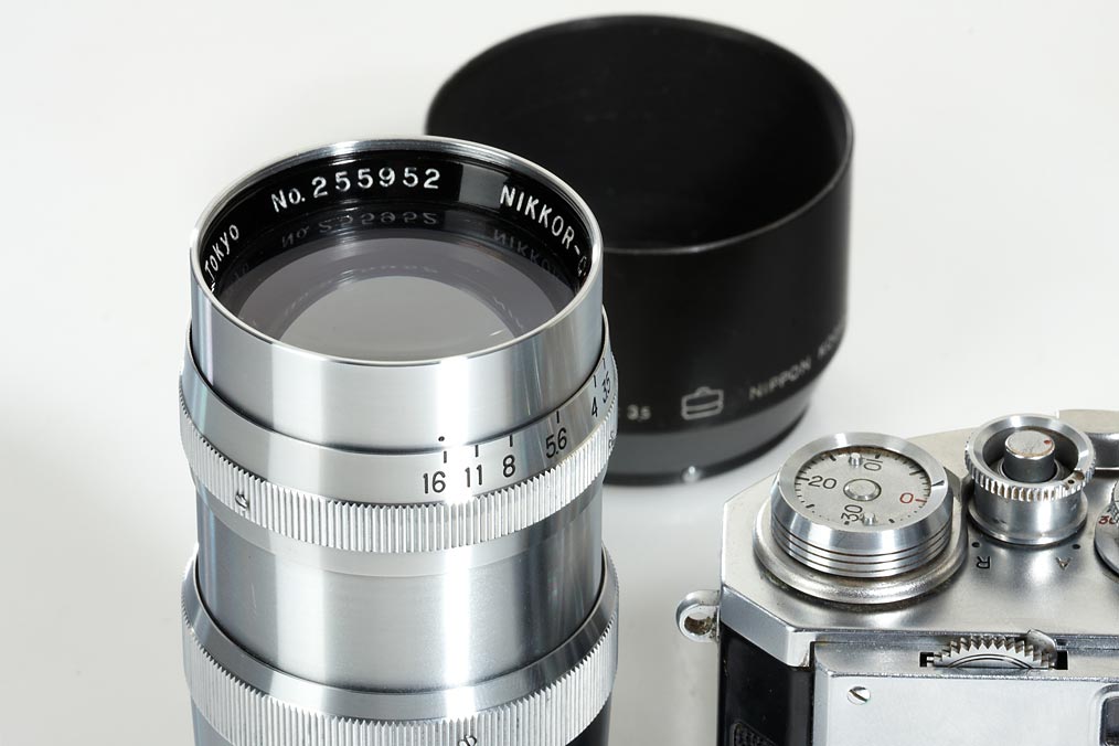 all chrome version in good working order with matching Nikkor-S.C 1.4/5cm no.390353, everready case, Nikkor-Q.C 3.5/13.5cm no.255952 (cond. B/A), cap, hood, case