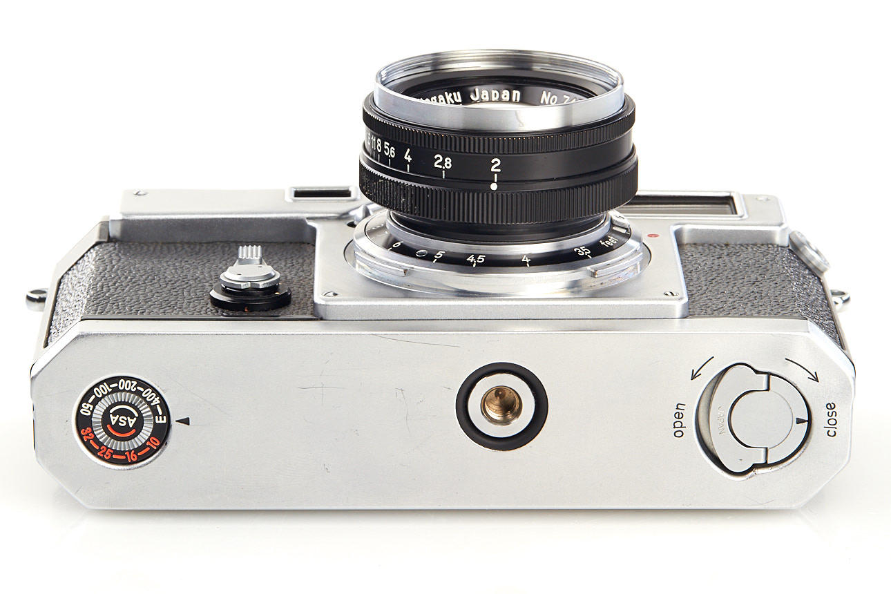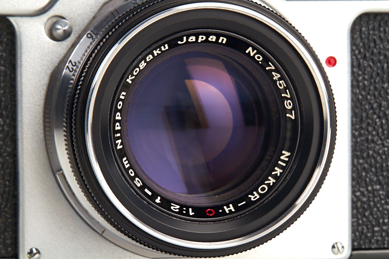 chrome camera in perfect working order, slight signs of use on the base plate, otherwise near mint condition, with near mint Nikkor H.C 2/5cm no.745797, lens cap