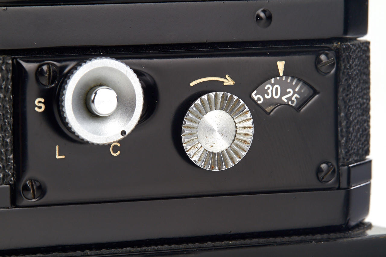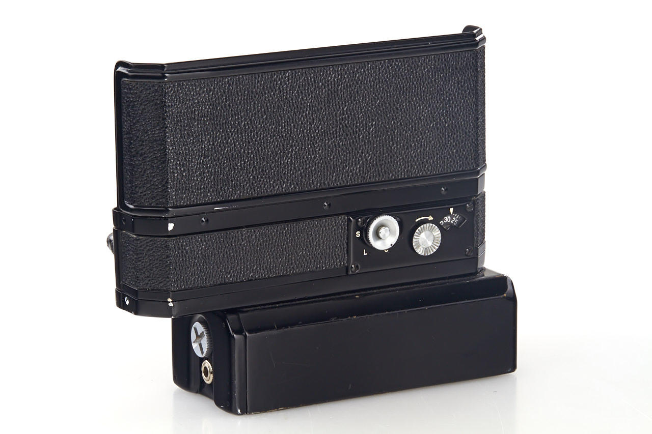 unnumbered black paint drive, well made from Nikon F motor drive, in perfect working order with battery pack