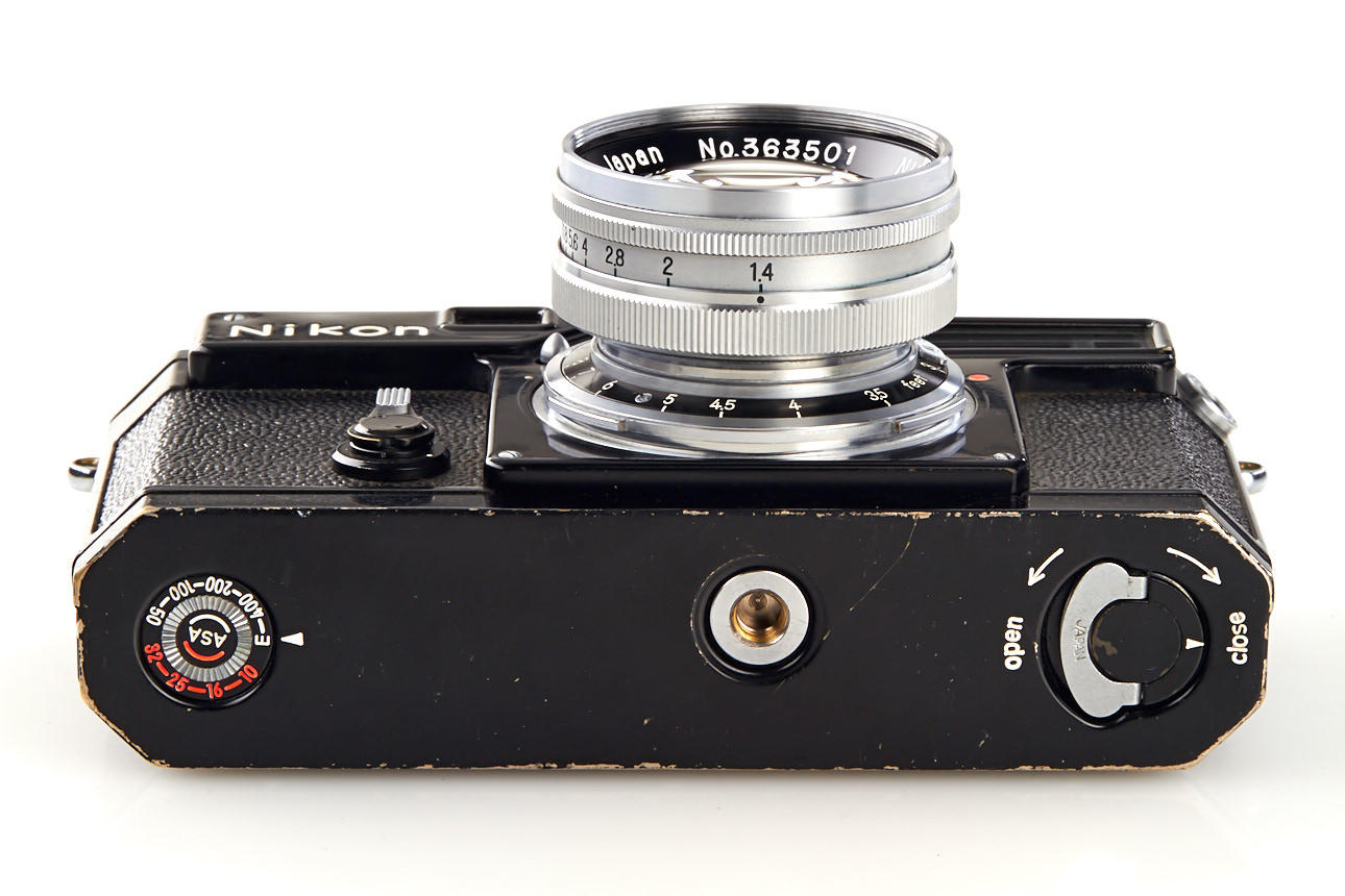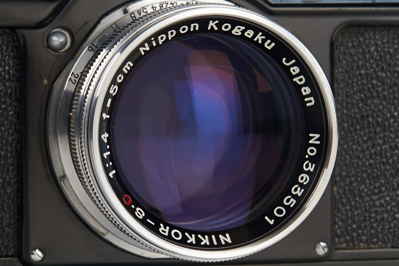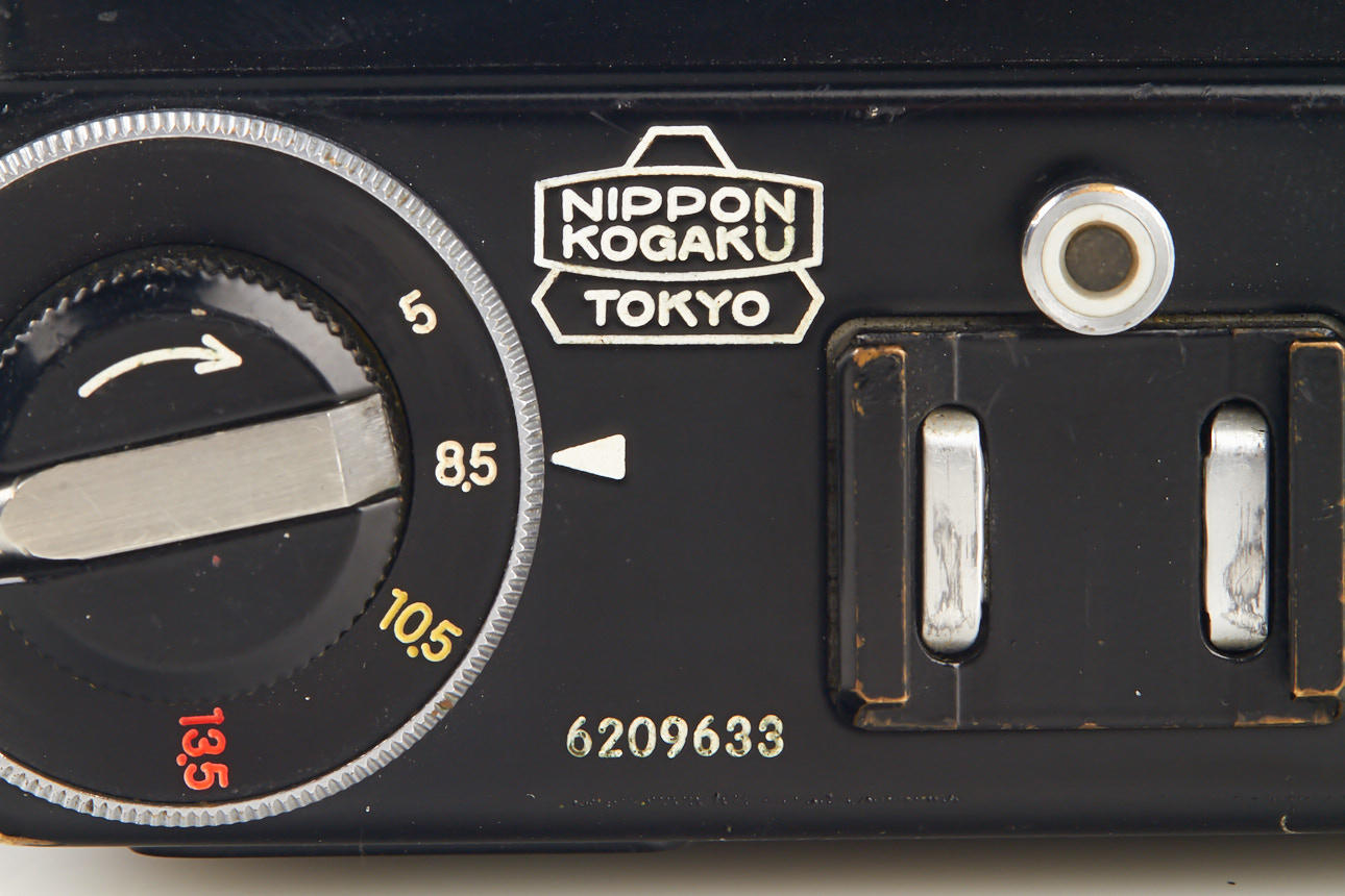 fully original black paint body in very fine and perfect working condition, cloth shutter, motor plate, with Nikkor-S.C 1.4/5cm no.363501