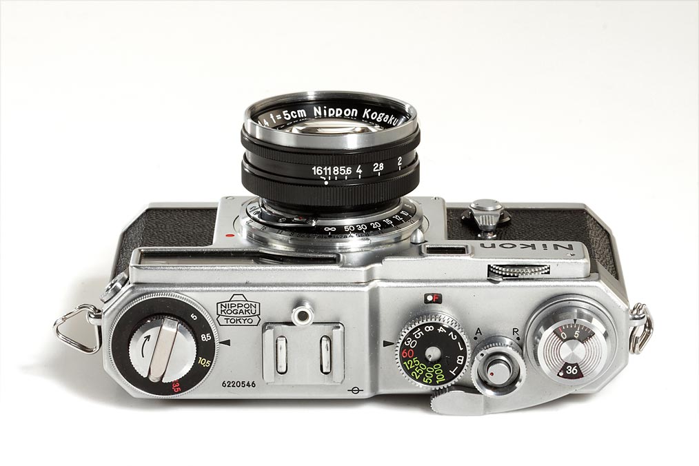 rare Nikon body with titanium shutter in fine condition, Nikkor-S.C 1.4/5cm no.388577, cap, case