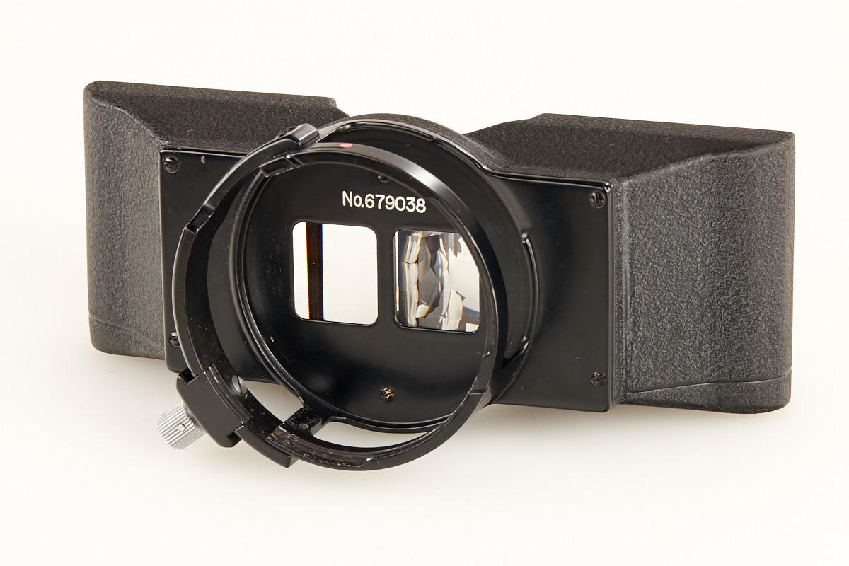 extremely rare outfit in near mint condition with Stereo-Nikkor 3.5/3.5cm no.242042, prism no.679038 (right prism glass chipped), hood, Nikon stereo finder, original filter and Japanese instruction leaflet, all in it's matching case - a highlight of every Nikon collection !