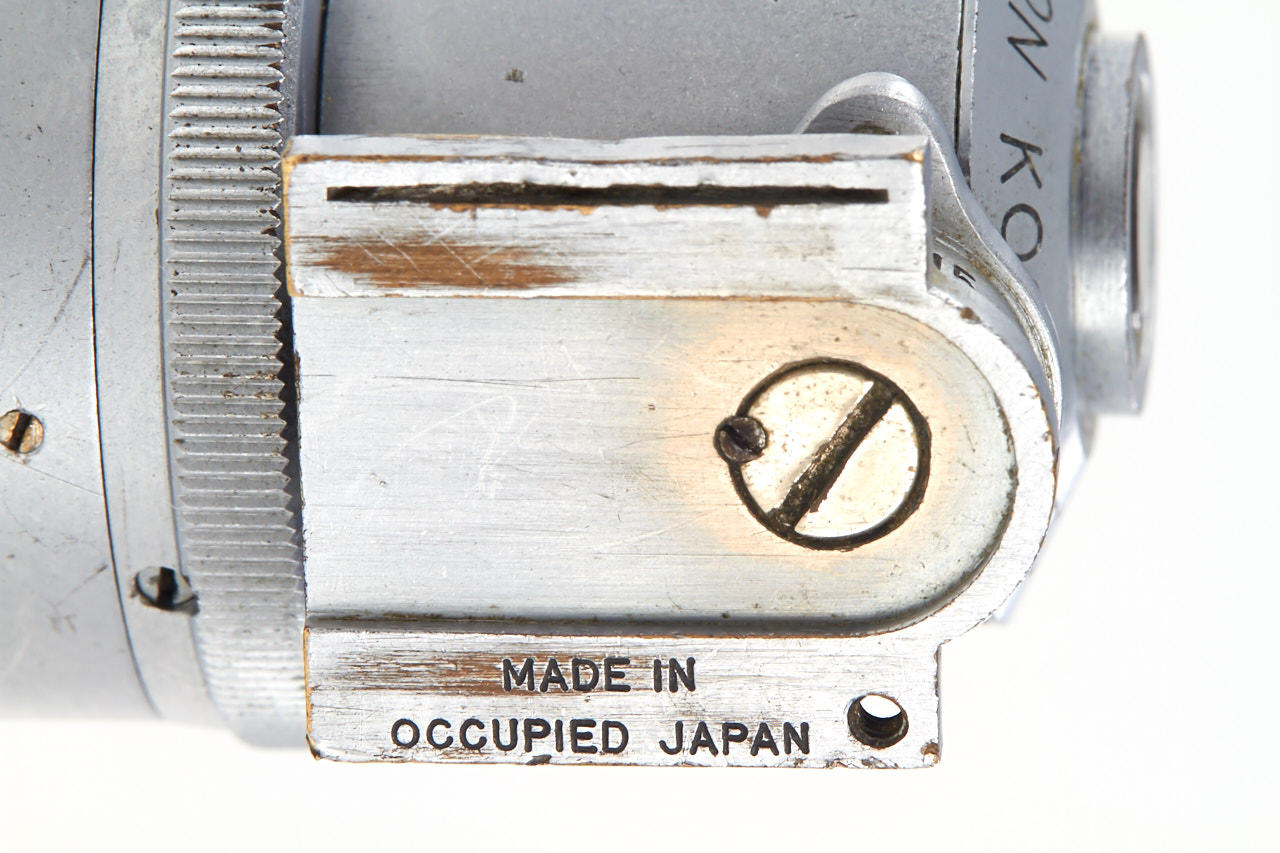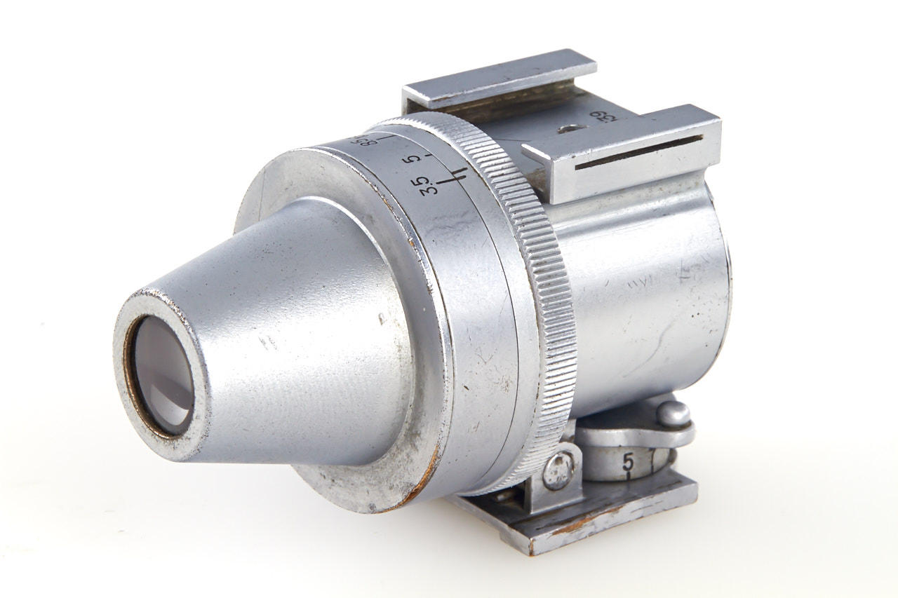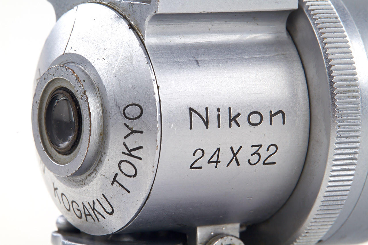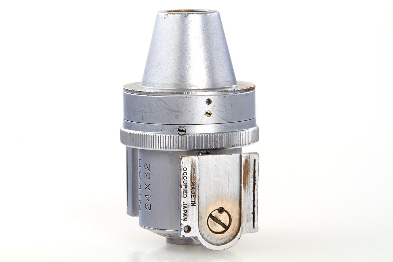 extremely rare Nippon Kogaku Tokyo finder specially produced for Nikon I, dull finish, engraved 'Nikon 24 x 32', 'MADE IN OCCUPIED JAPAN', very few of these first Nikon finders are known to exist, they have been verified from no. 70522-70554 only, in fine condition, brown Tokyo leather case