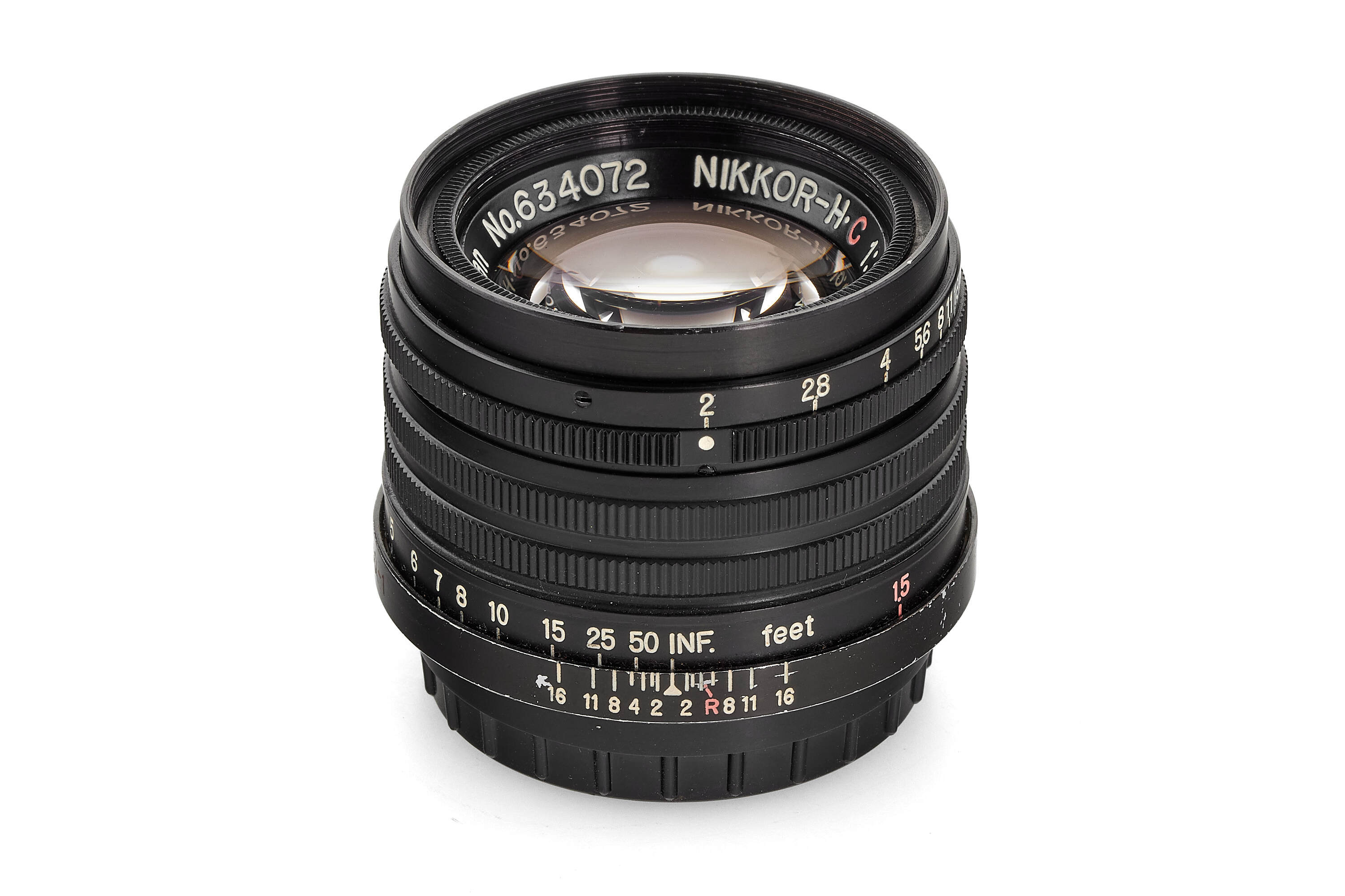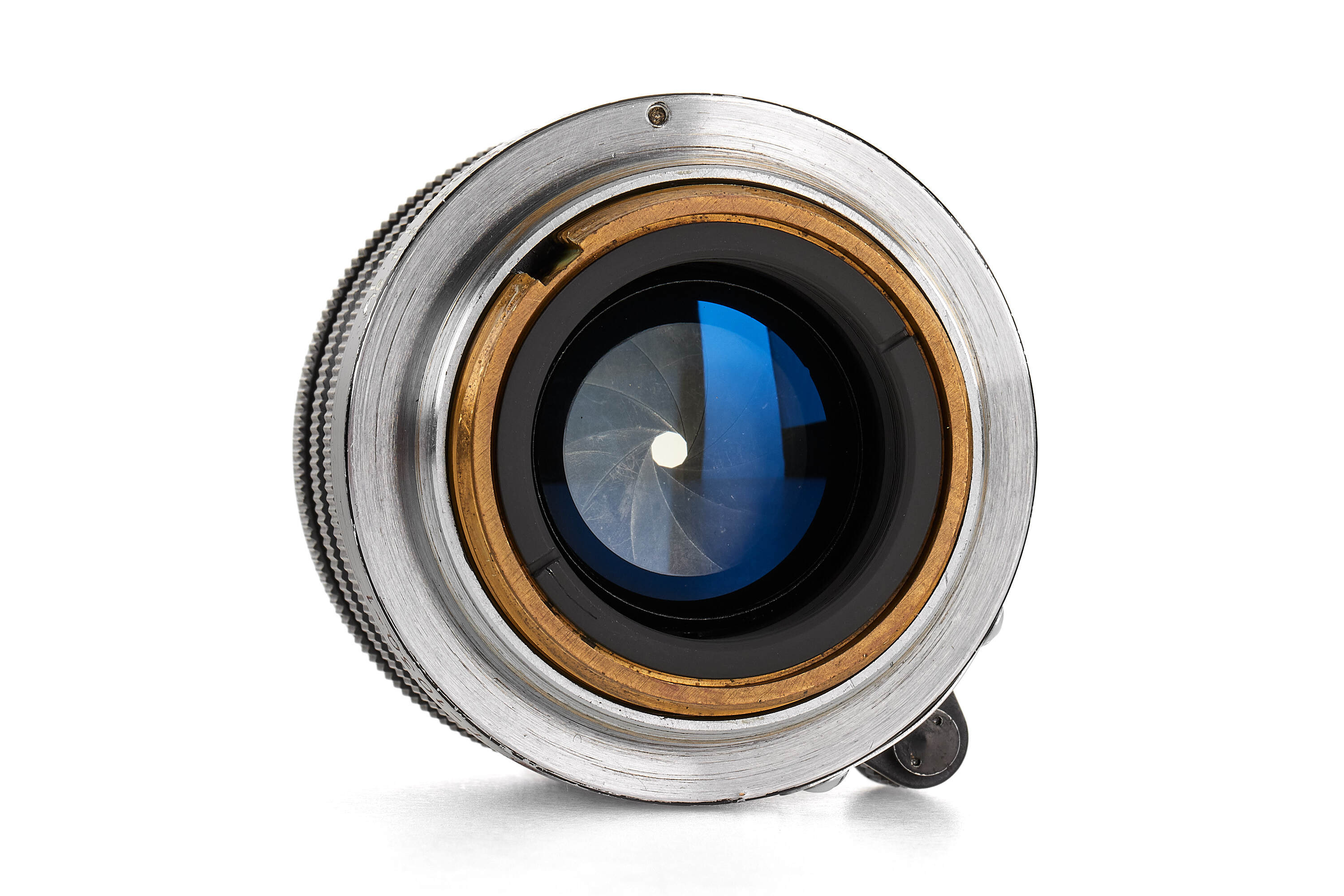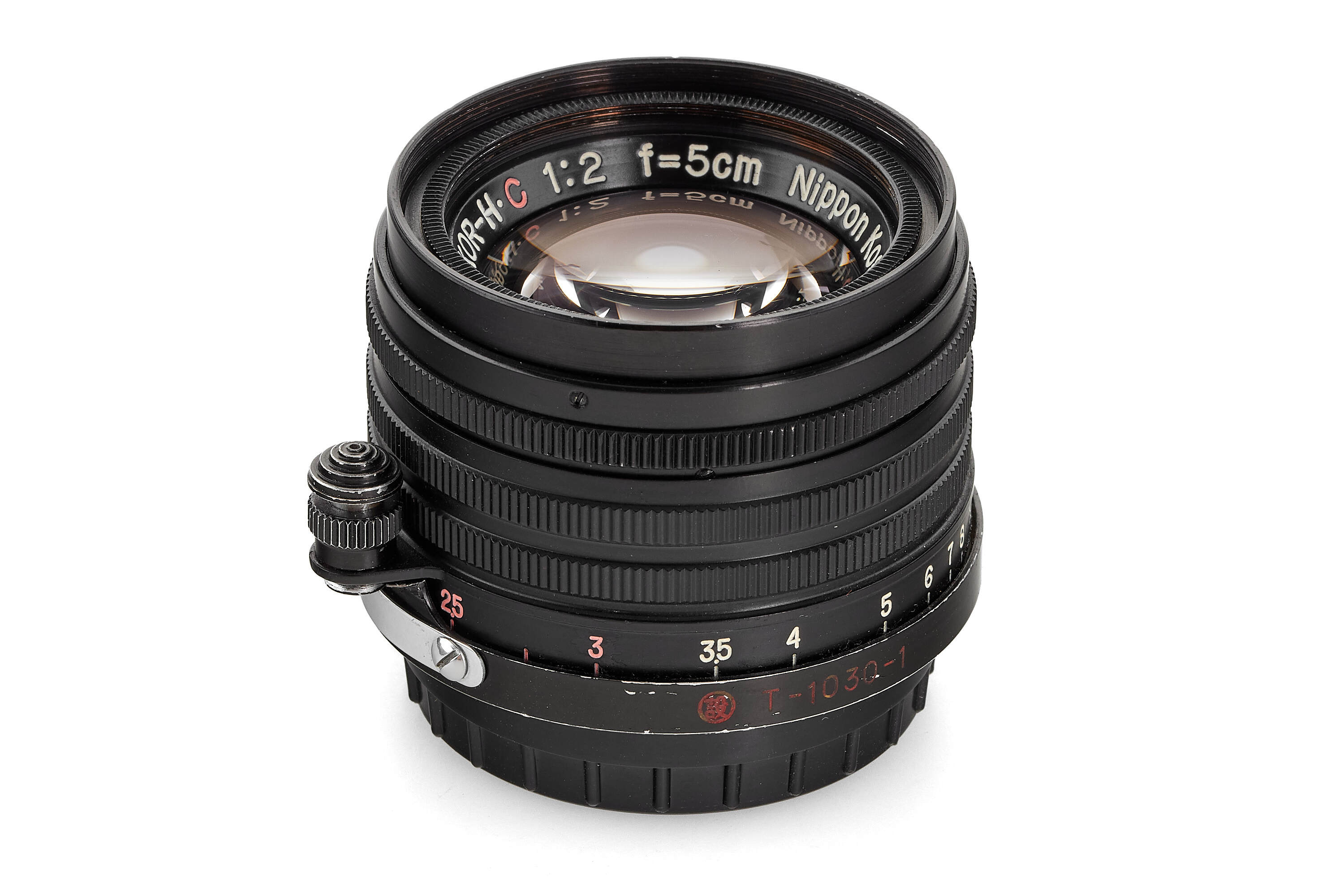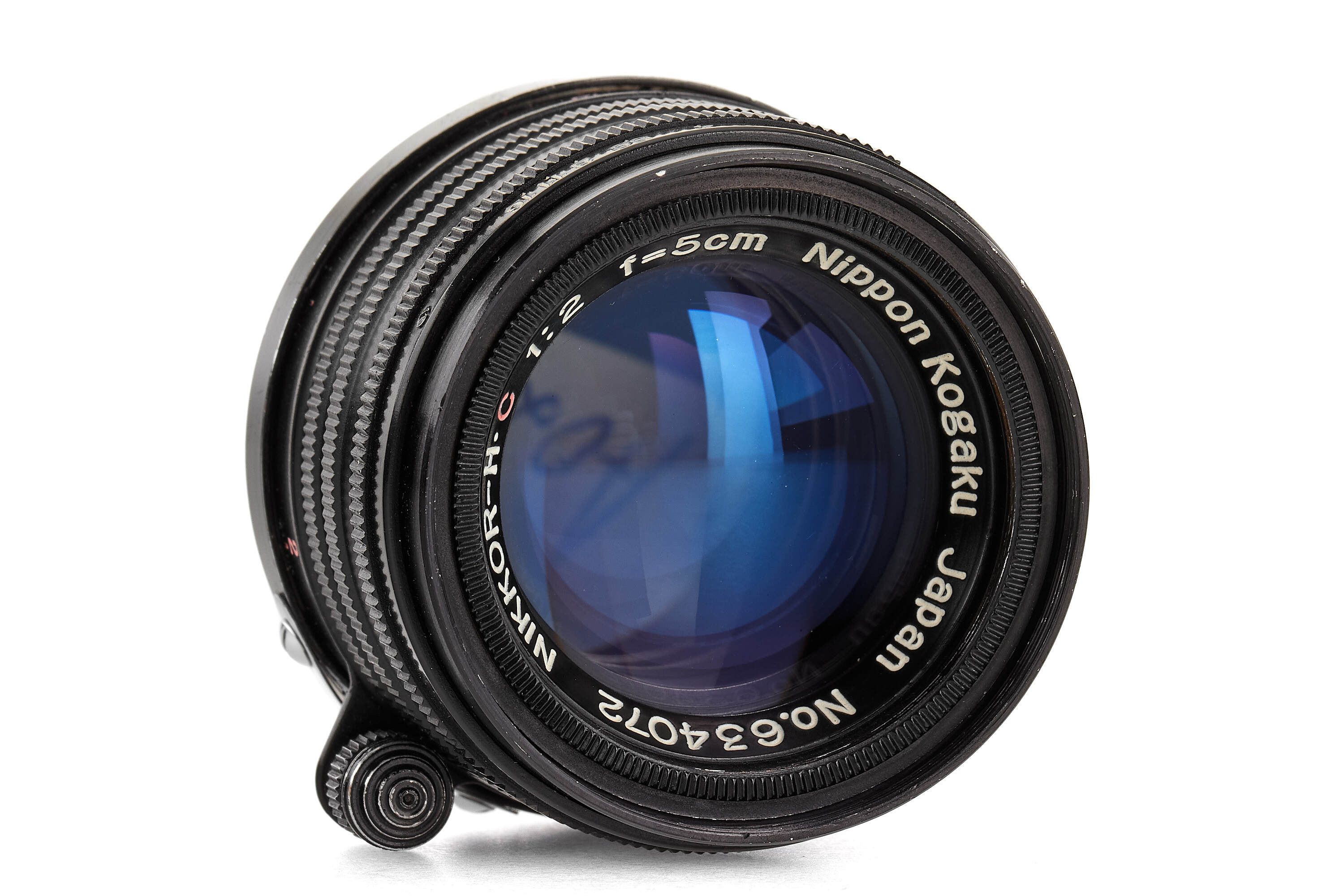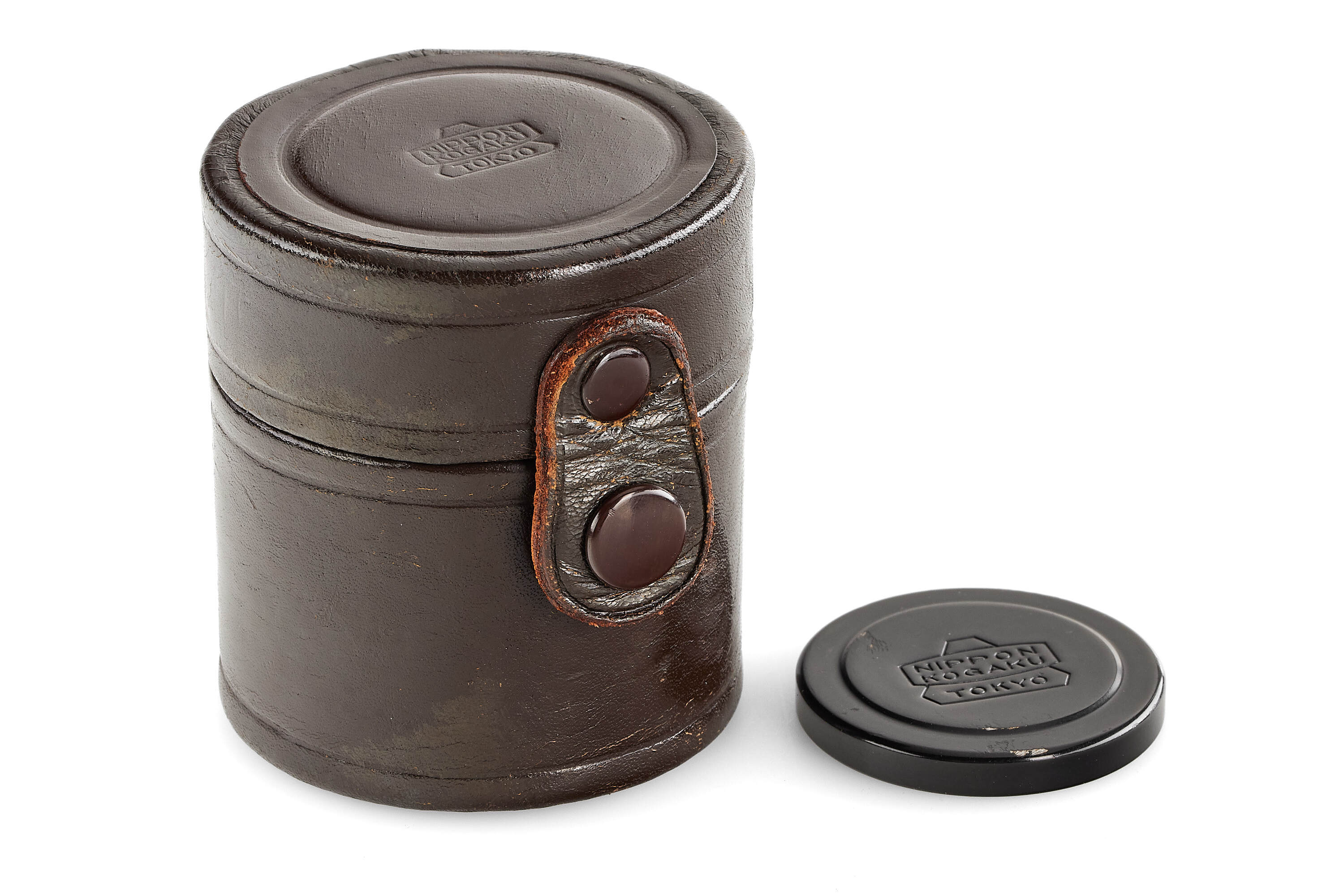 Very rare all-black Nikkor H.C 2/5cm in original, rangefinder-coupled M39 mount. In beautiful, near-mint condition, with both original caps and leather keeper.