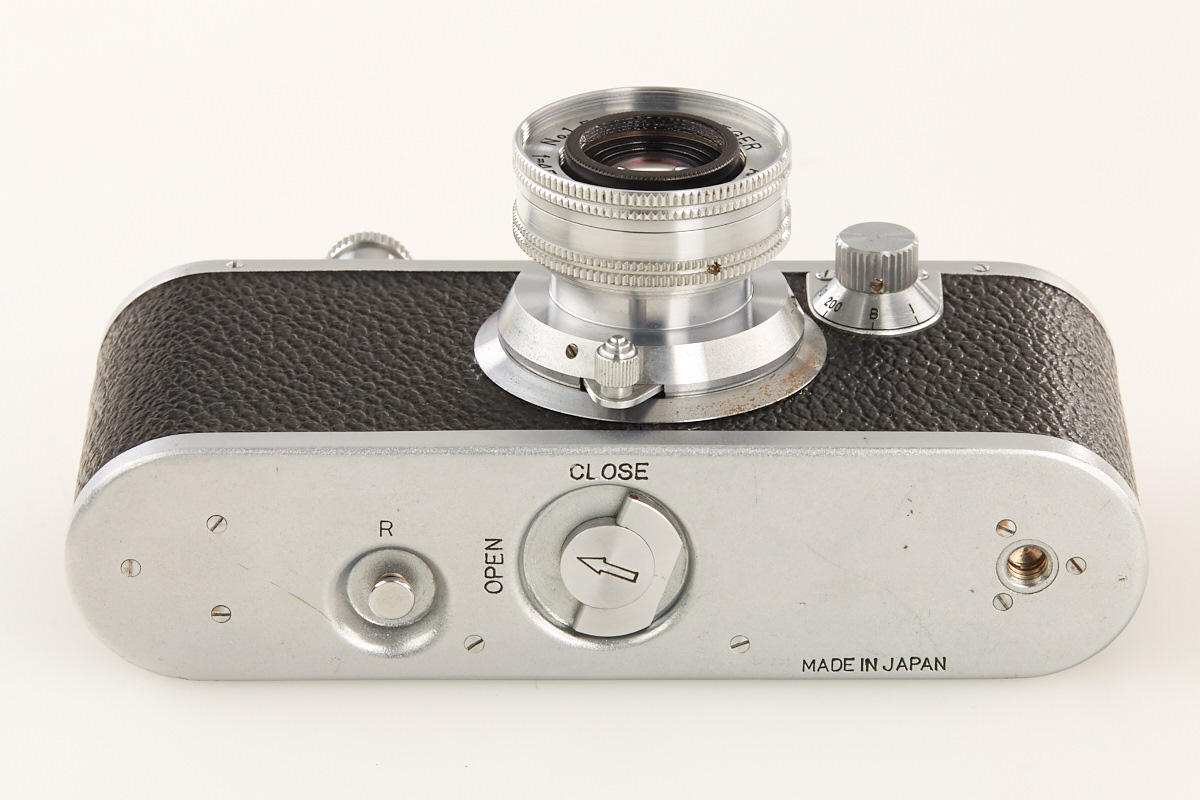 very rare Japanese Leica-styled 35mm viewfinder camera with Eleger Anastigmat 3.5/45mm no.1541, in beautiful condition with original case