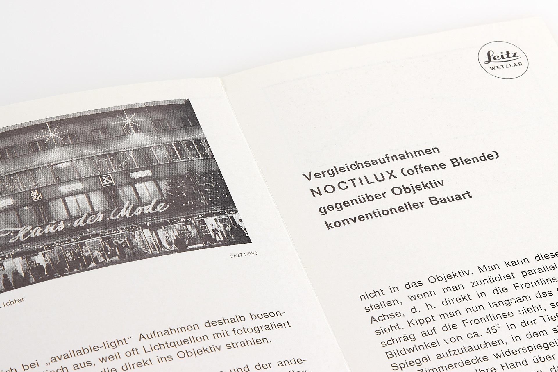 an original German brochure from the first version Noctilux, in very good condition (one side perforated)