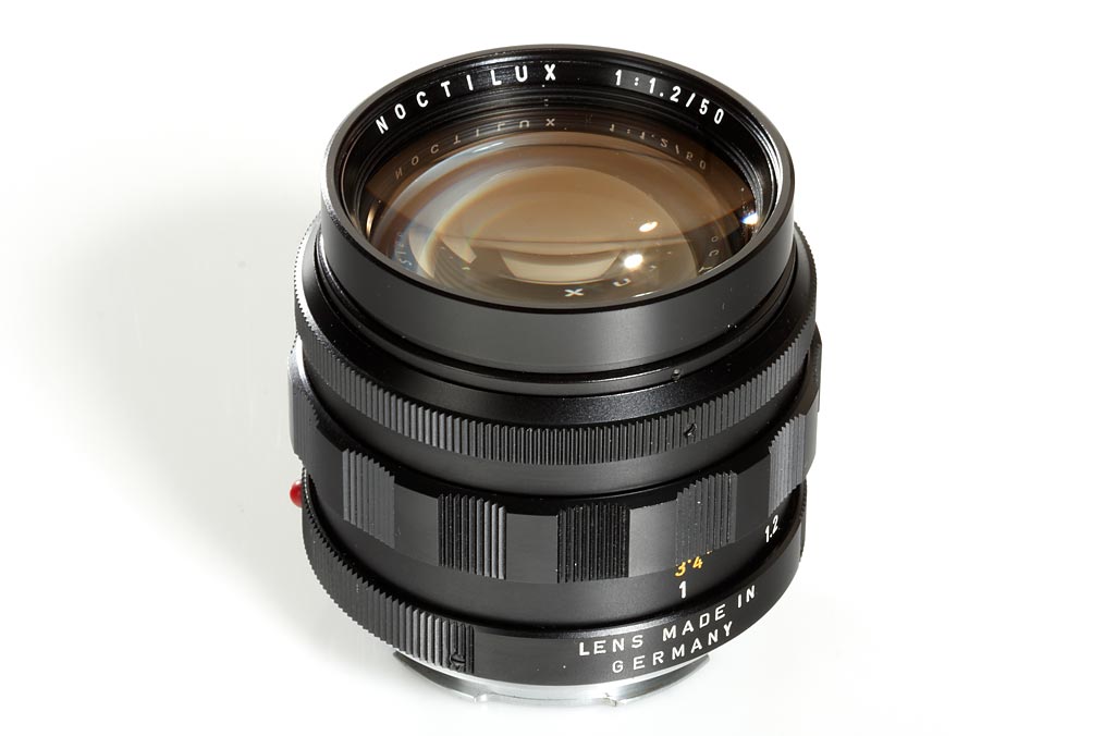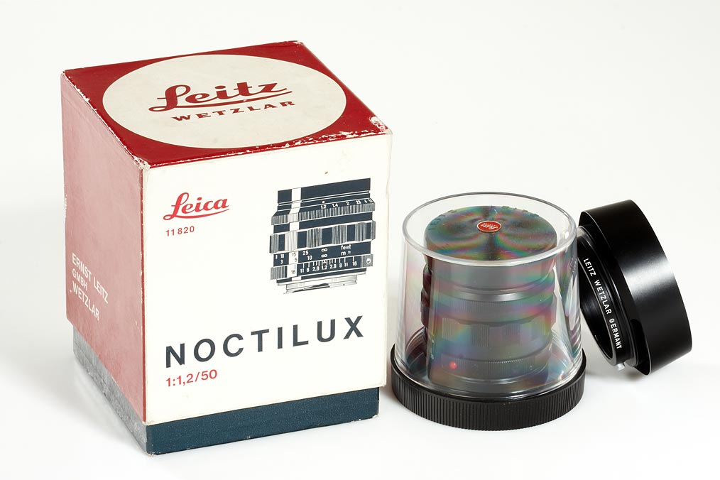 mint Noctilux 1.2 with perfect clean lenses, cap, keeper, hood 12503, maker's box with matching number