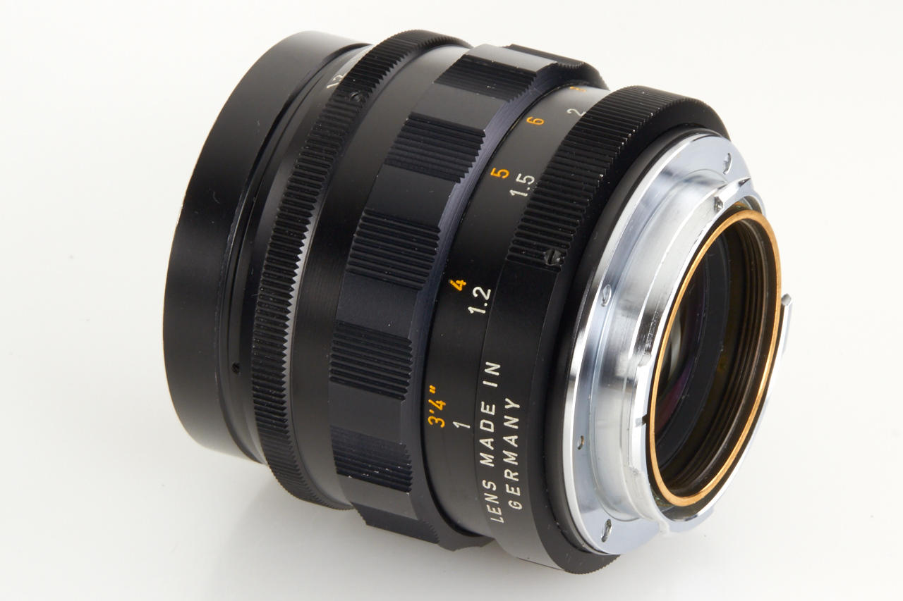 one of the last lenses produced (production ended with number 2556900) in perfect condition with clean lenses and aperture blades, crisp aperture stops, smooth focusing, original metal hood, front and rear cap, original brochure (Liste 110-79)