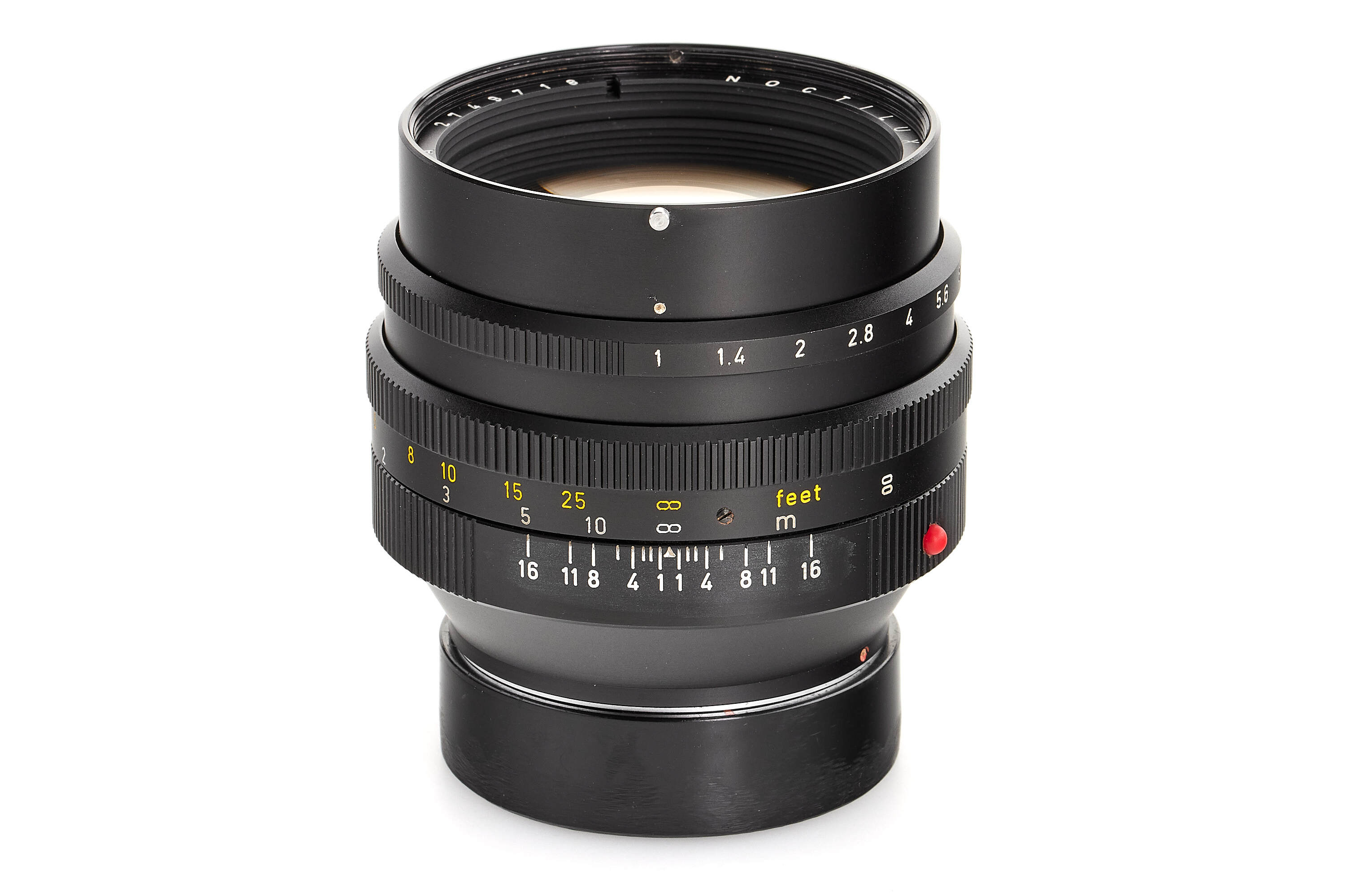 Extremely early sought-after E58 Noctilux from the first batch of production, 87th ever produced (start with no.249631), in beautiful, near-mint condition, clean and clear optics, with rare 12519 hood and both caps.