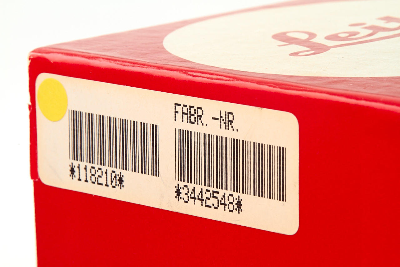second E60 version with provision for squeeze-grip lens hood, in mint condition with perfect optics, E60 UVa filter, 12544 hood, front and rear cap and original maker's box