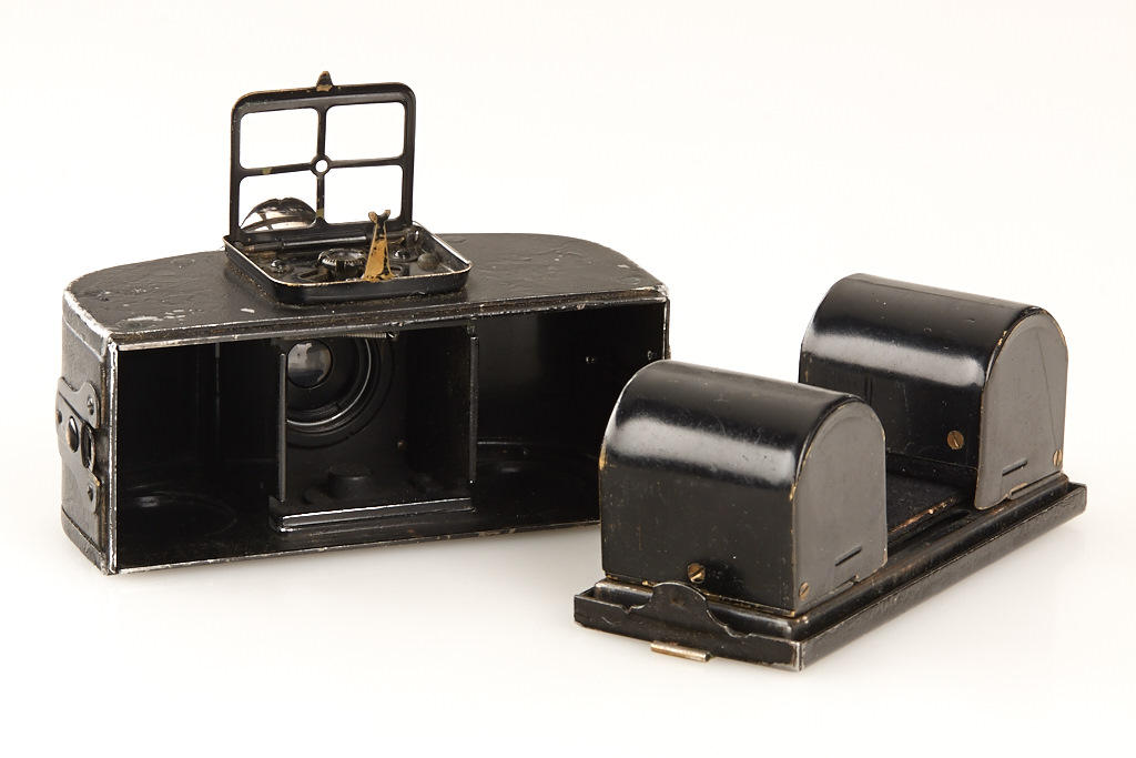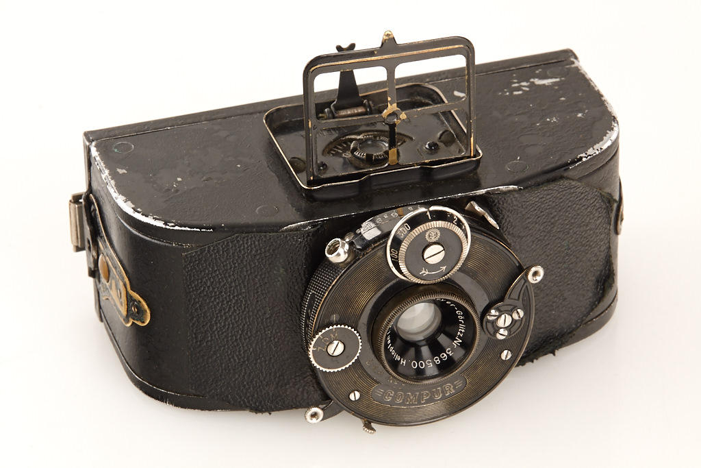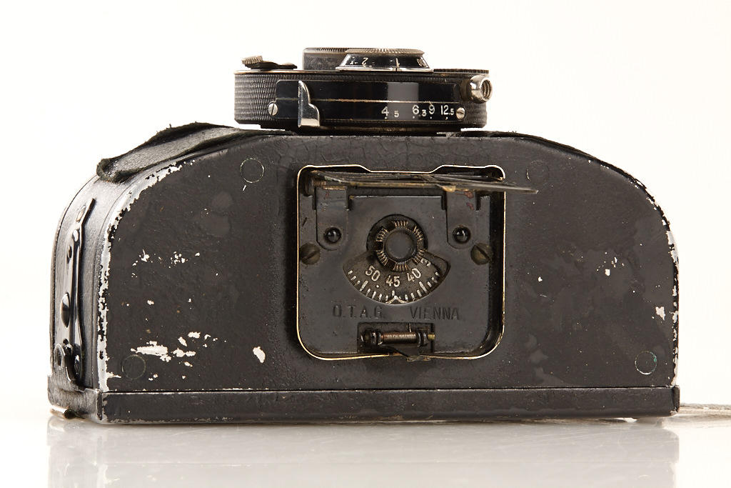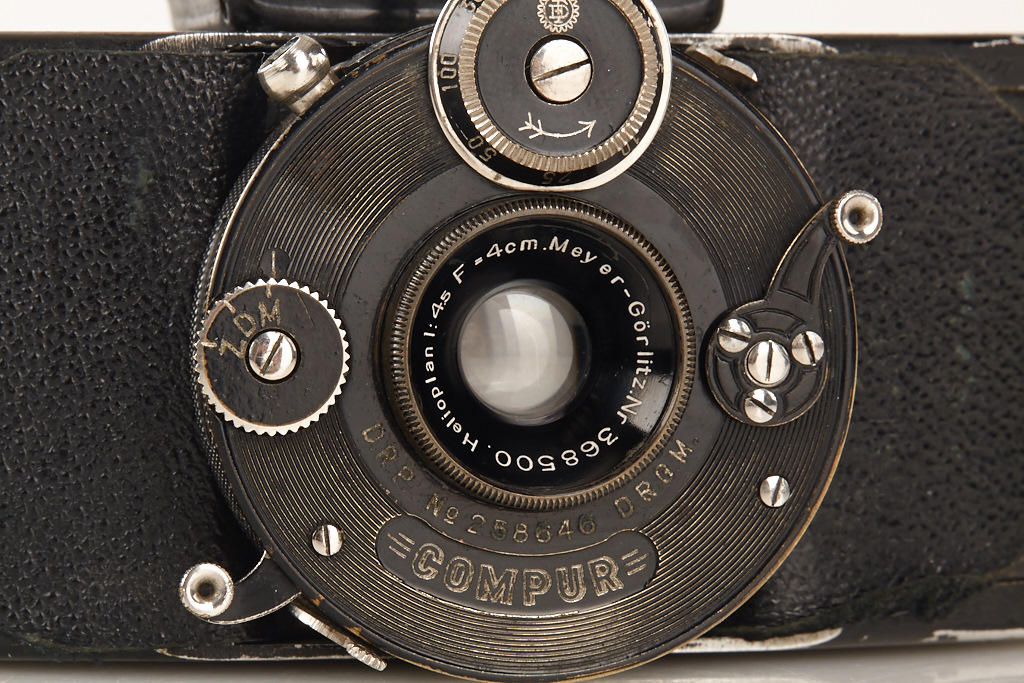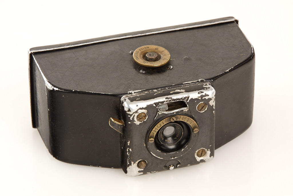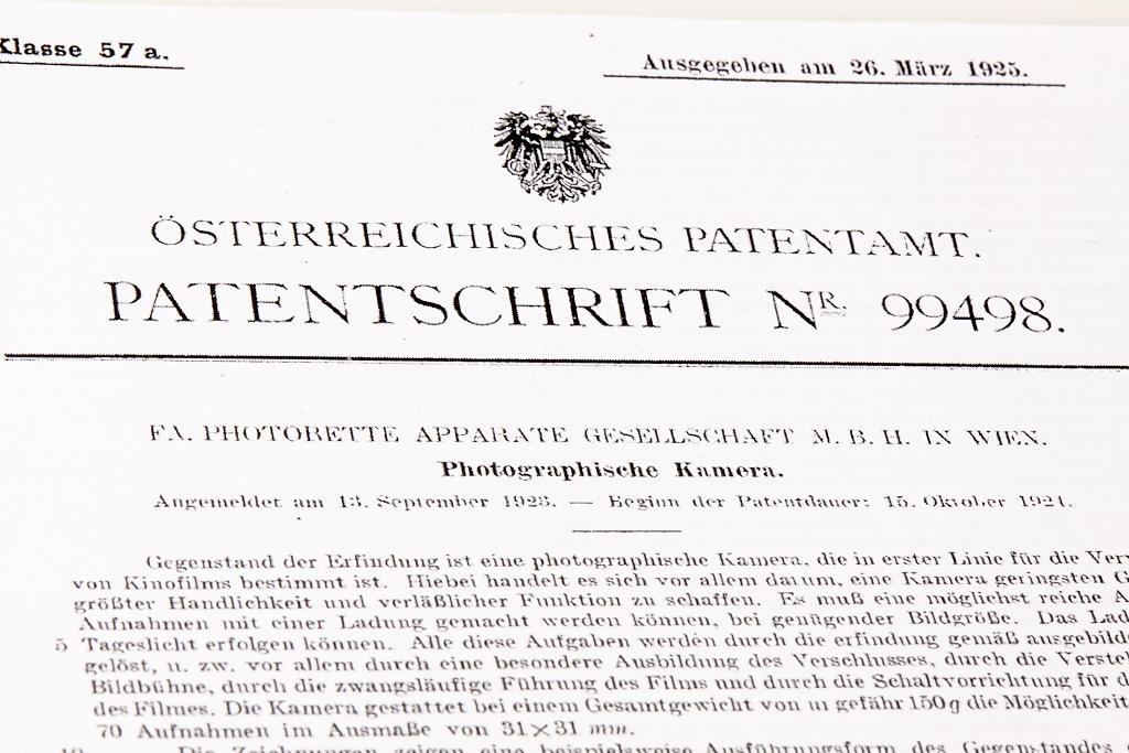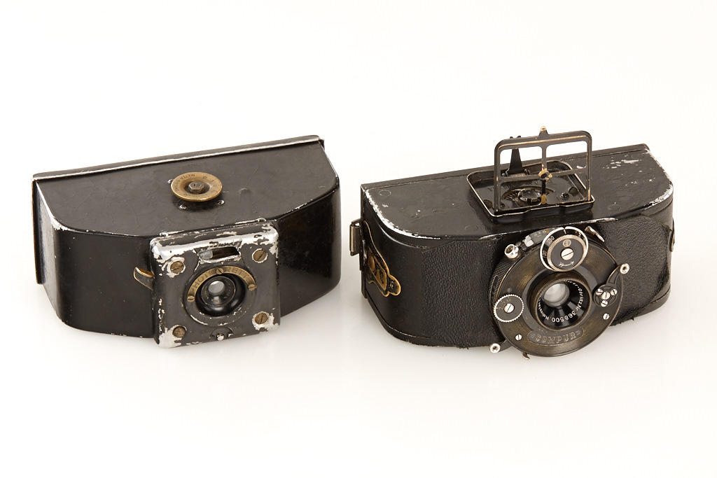 (1) early Austrian 35mm camera for exposures 31x33mm, rare version with Helioplan 4.5/4cm no.368500 in Compur shutter, partly leather-covered metal body, both film cassettes, (2) very rare PHOTORETTE no.899 with Laak Polynar 6.8/42mm, with copy of the patent letter (2)