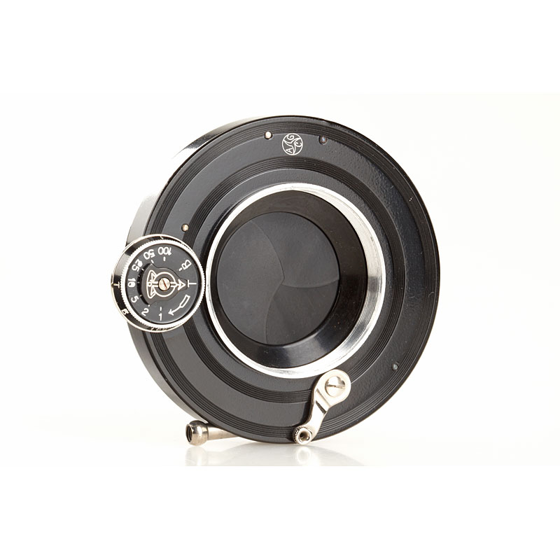 single exposure camera with large Ibsor shutter, ground glass plate, 2 film holder, very rare SUWOO viewfinder and original red maker's box