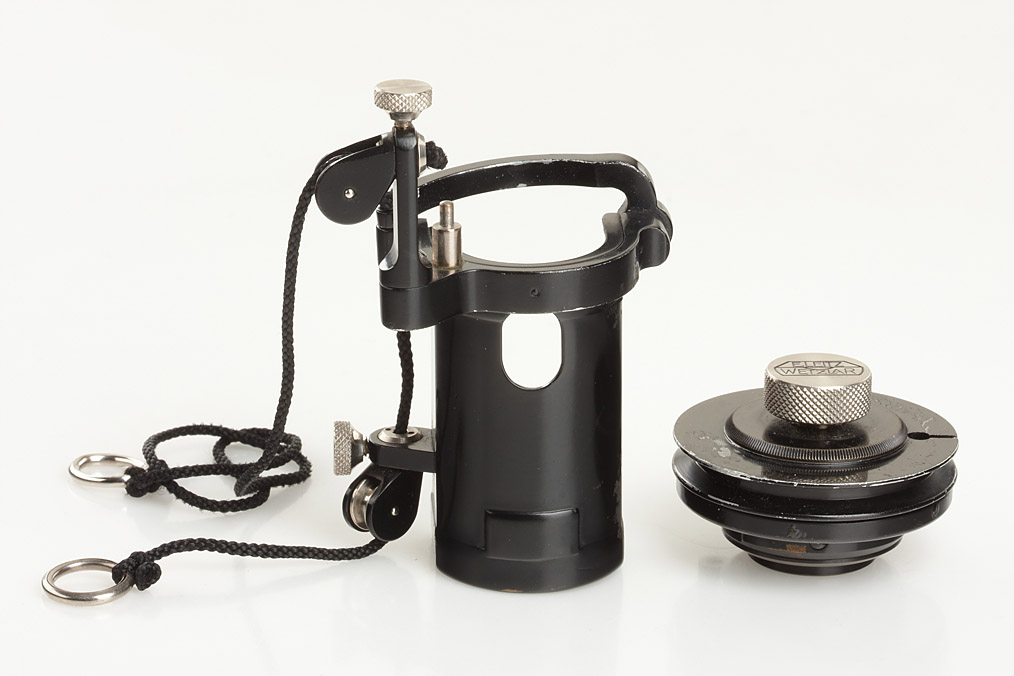 very rare remote release and winder for early Leica in original and good condition, with original red maker's box (Leitz Fernauslöser & Aufzug OOFRC)