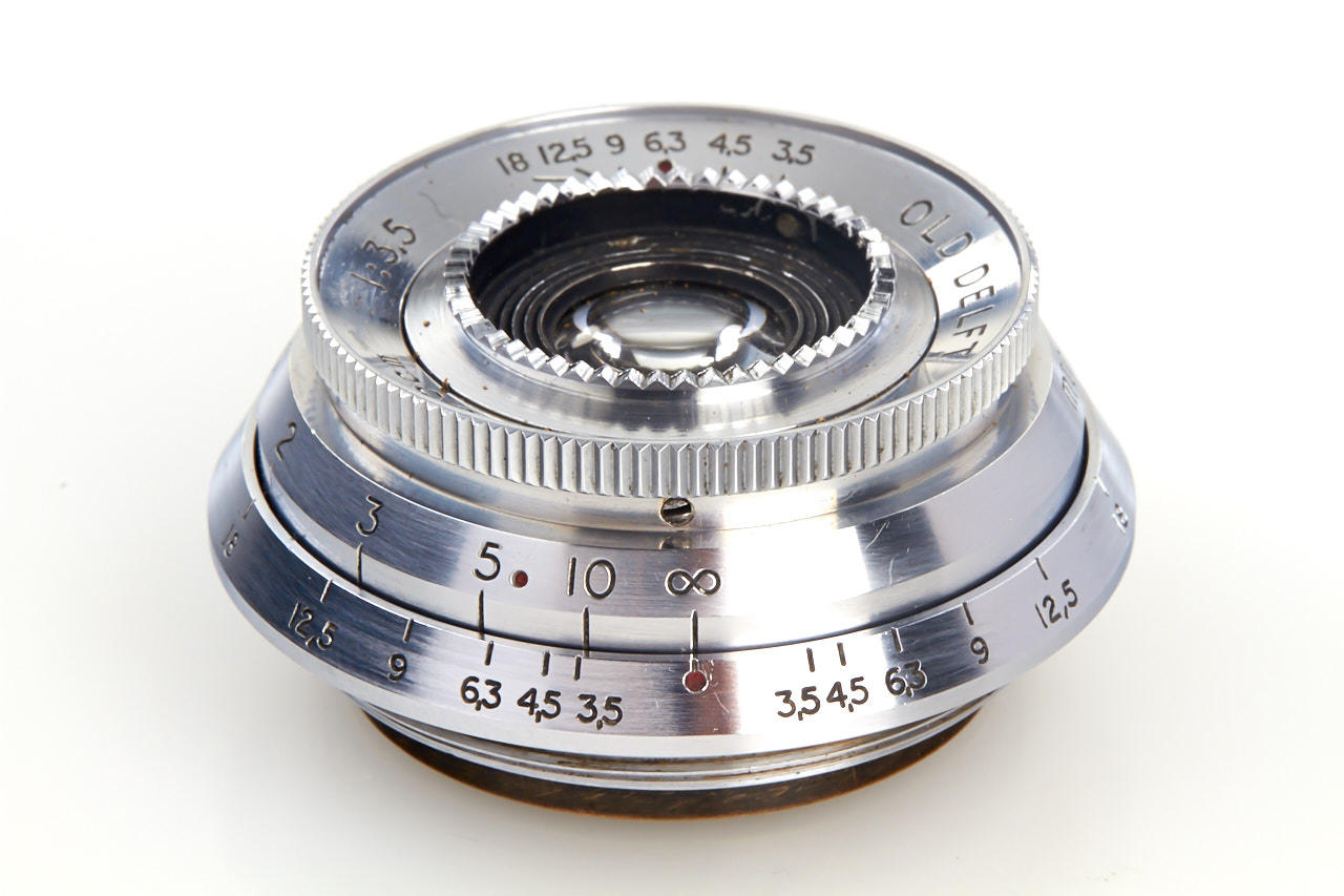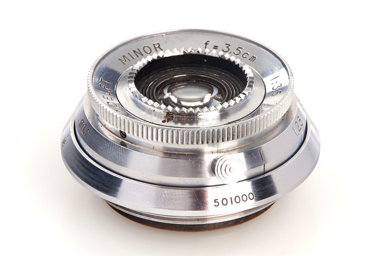 compact wide angle lens in rangefinder-coupled M39 mount, in near mint condition, with leather keeper