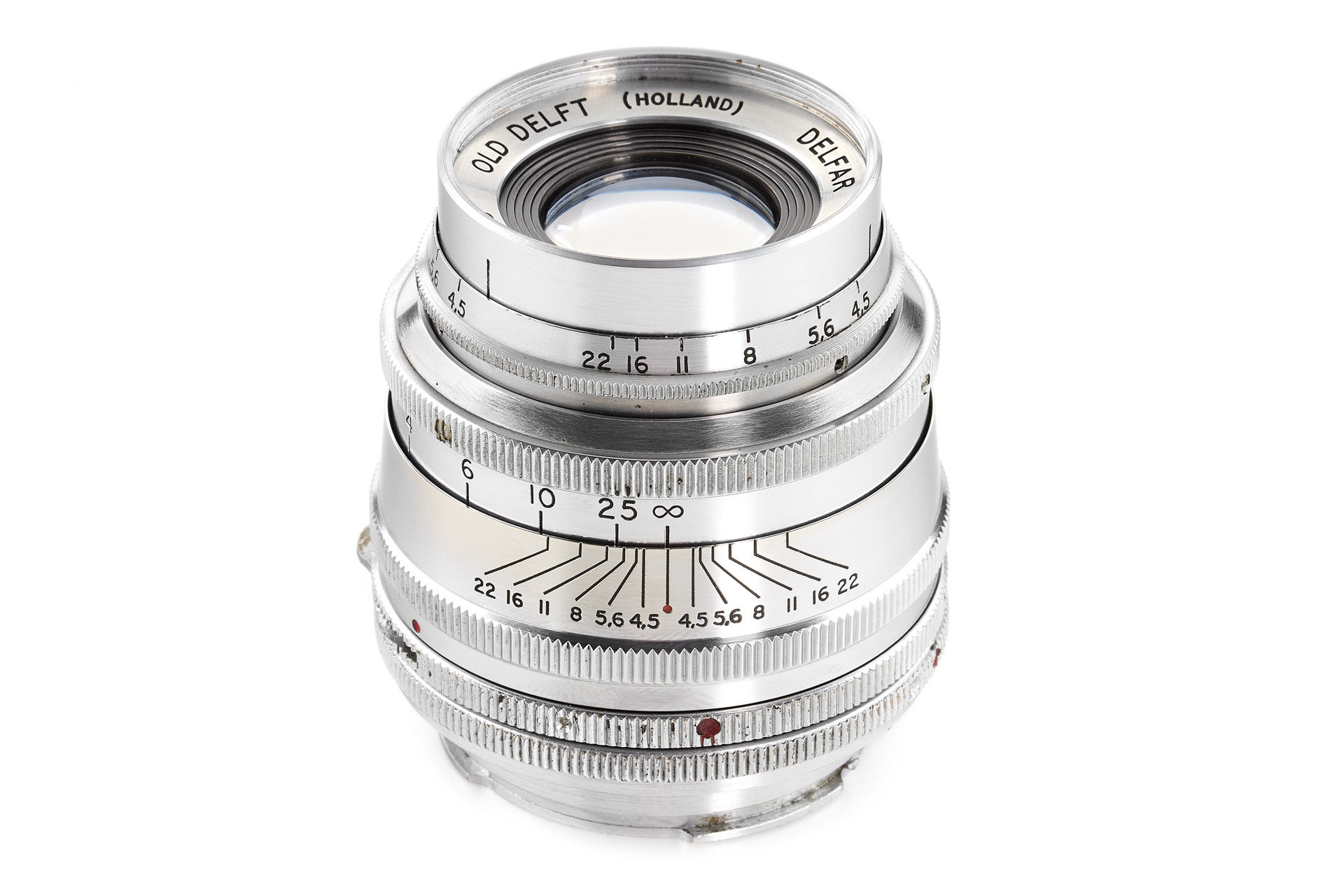 Very rare high-quality lens made in the Netherlands, in Exakta mount, in mint condition, good coated optics showing a light haze, with 2x close-up extension tubes and original leather case.