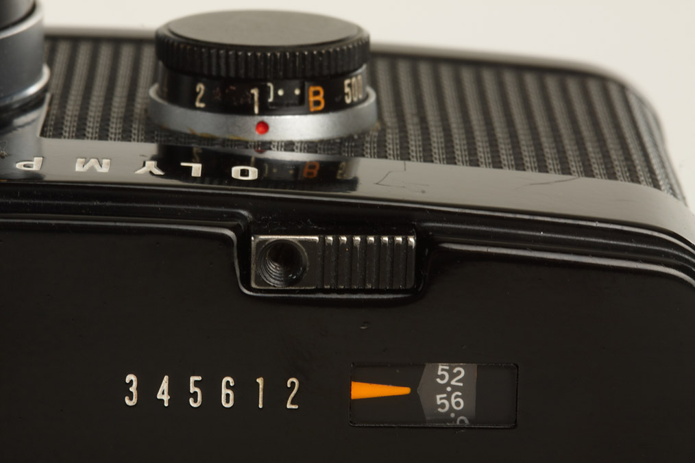 quite rare black painted camera with round viewfinder, D.Zuiko 2.8/38mm no.103392, cap