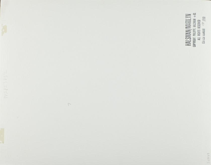 Gelatin silver print, printed 1981 25,3 x 33 cm (10 x 13 in) Photographer's “Halsman / Marilyn, Copyright Philippe Halsman ©81, Edition Number 138[handwritten] / 250” estate stamp on the reverse