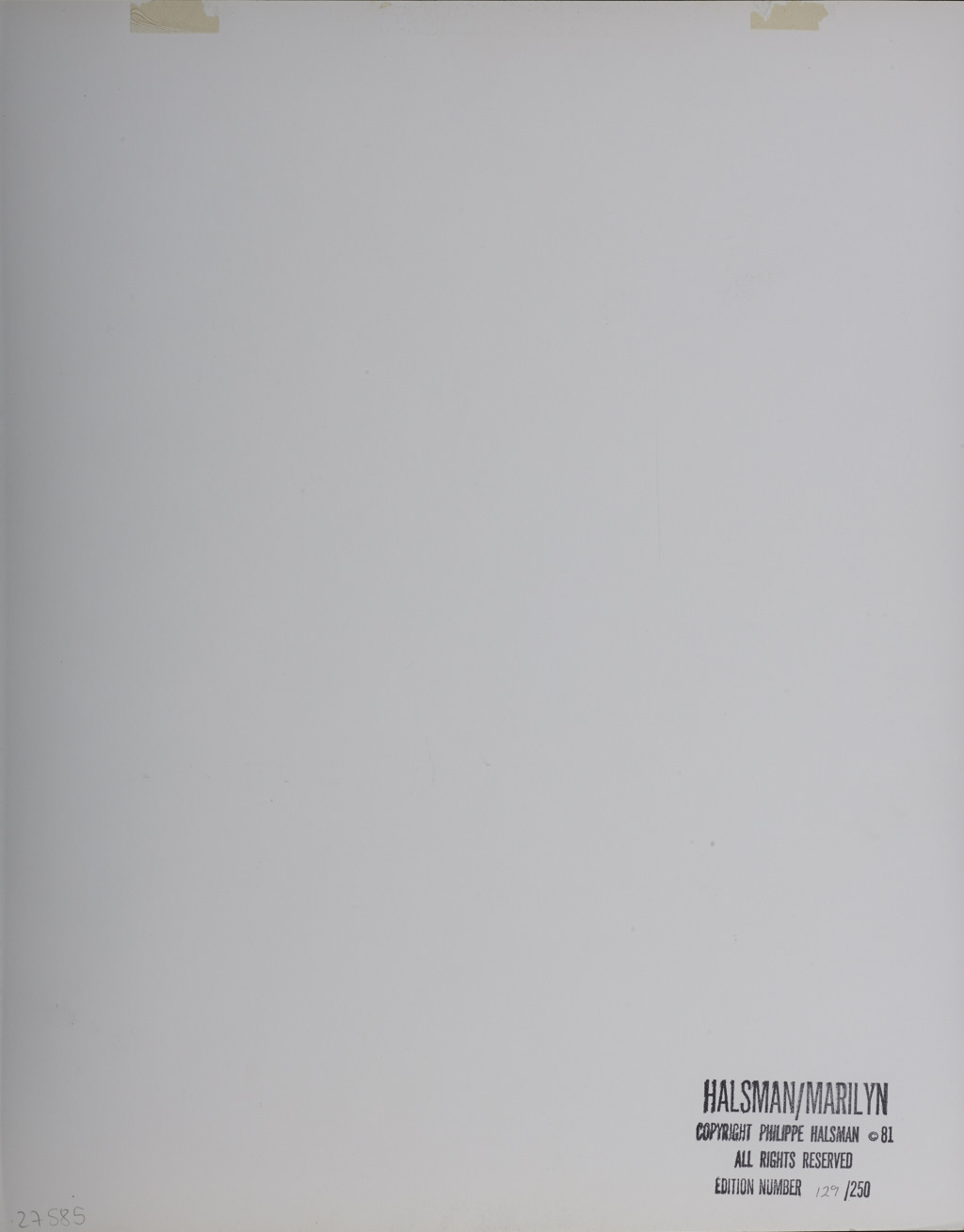 Gelatin silver print, printed 1981 25,3 x 33 cm (10 x 13 in) Photographer's “Halsman / Marilyn, Copyright Philippe Halsman ©81, Edition Number 129 [handwritten] / 250” stamp on the reverse