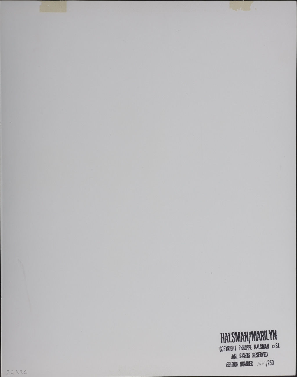 Gelatin silver print, printed 1981 32,6 x 25,1 cm Photographer's “Halsman / Marilyn, Copyright Philippe Halsman ©81, Edition Number 145 [handwritten] / 250” stamp on the reverse