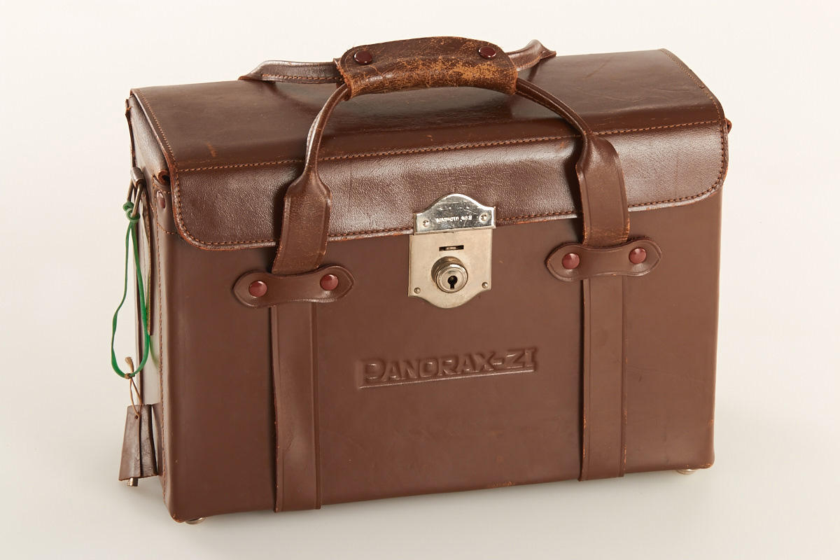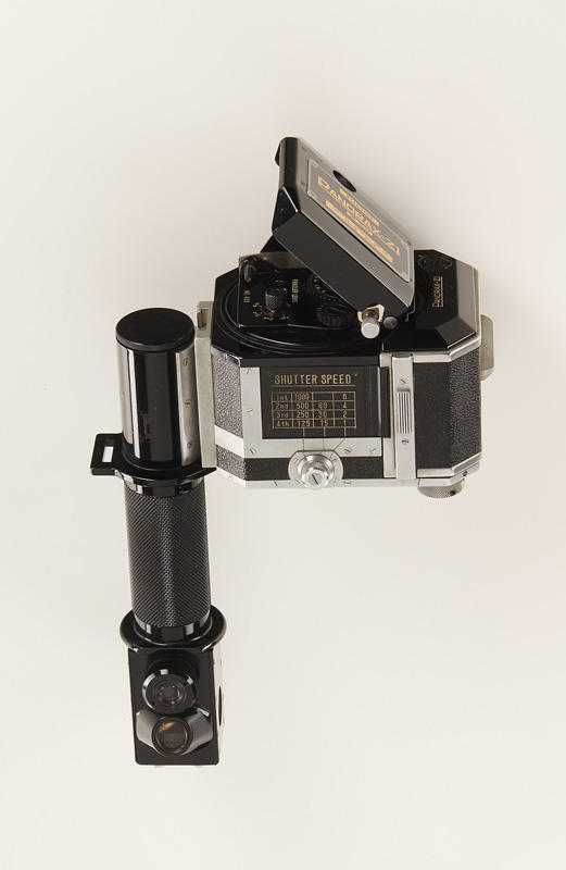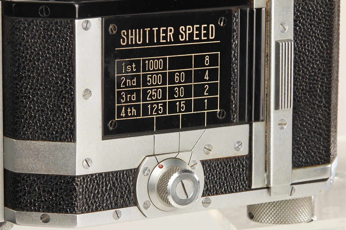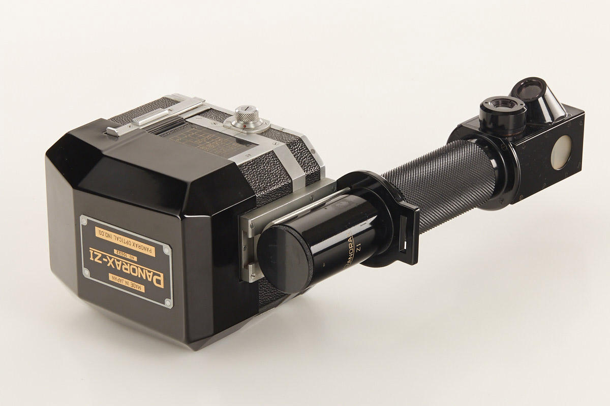 Japanese panoramic camera for 45° - 360° exposures (24x245mm) on 35mm film, Panoler lens 3.5/40mm no.423, extremely rare, complete with standard viewer, lower viewer and upper viewer, 3 filters, periscope finder, instruction book, brochures, original fitted maker's leather case - all in perfect condition