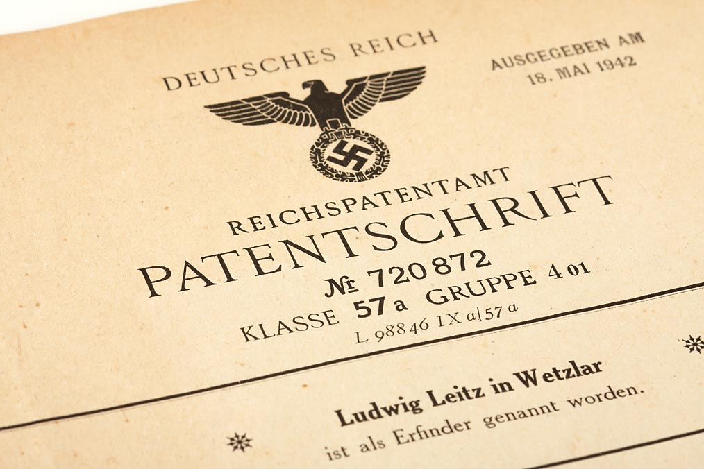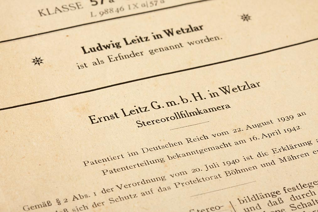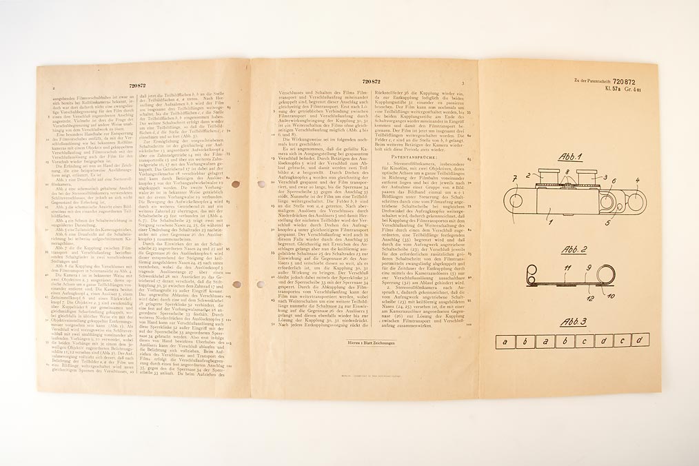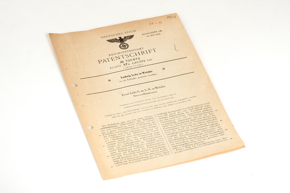 original 'Patentschrift' for the Ernst Leitz 'Stereorollfilmkamera' from 1942, the patent was registered in August, 1939 by the 'Reichspatentamt' in Berlin, a very important piece of history from one of the most unusally Leica cameras produced