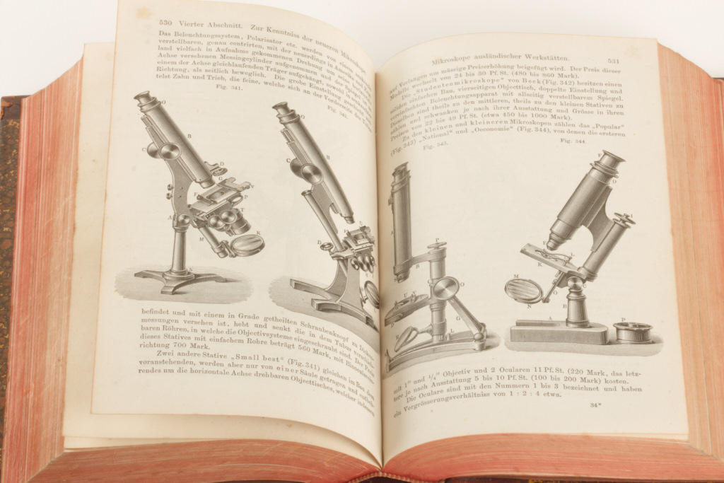 (1) Dr. L. Dippel Das Mikroskop, Braunschweig 1882, (2) Dr. Leo Graetz Das Licht und die Farben, Leipzig 1905, (3) Dr. Mebes Farbenphotographie mit Farbrasterplatten, 1911 (3)