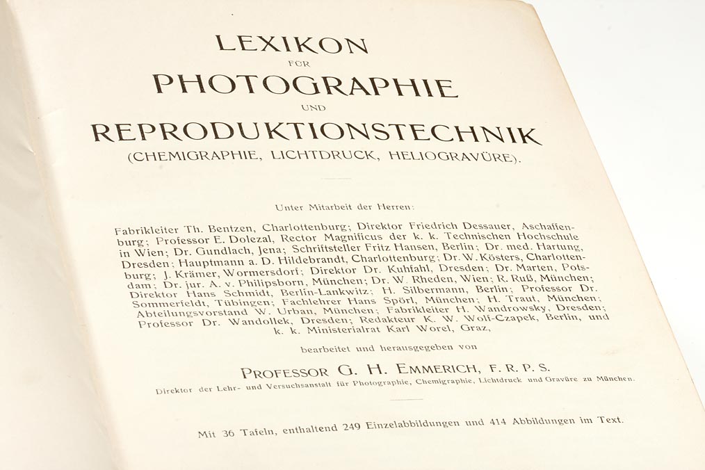 (1) Liesegang's Handbuch des praktischen Photographen, Düsseldorf 1894, (2) Lexikon für Photographie und Reproduktionstechnik (Chemie, Lichtdruck, Heliogravüre), Wien und Leipzig 1910, both rare and in good original condition (2)