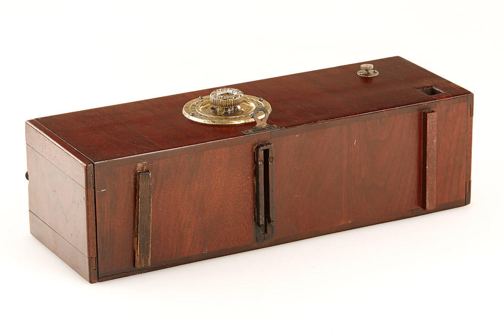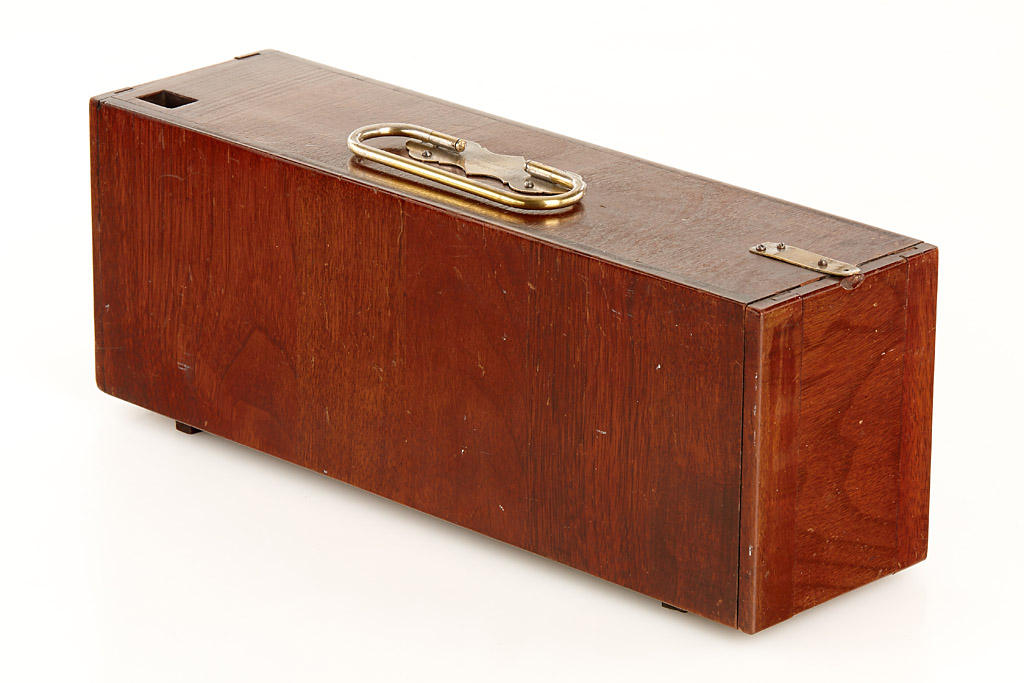 American Tintype camera, wooden body with nickel fittings for 36 ferrotype plates 2 1/2x3 1/2', in fine condition without tank