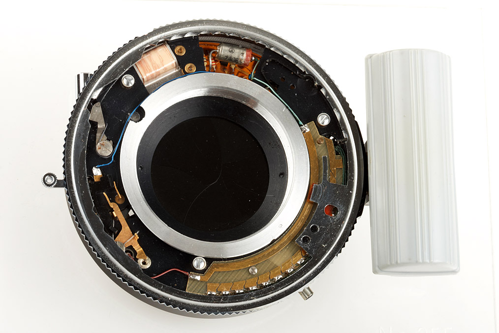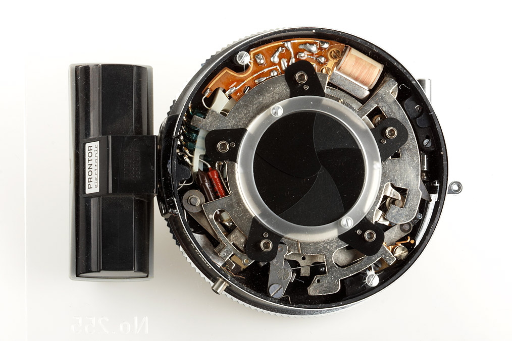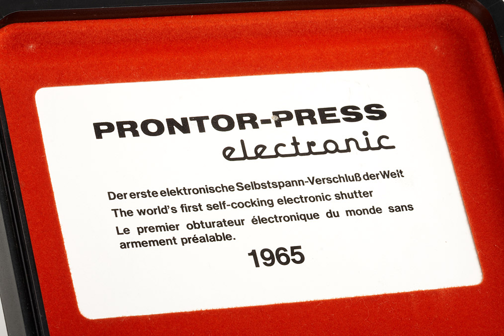 mint display of the first self-cocking electronic shutter, historic collectors item