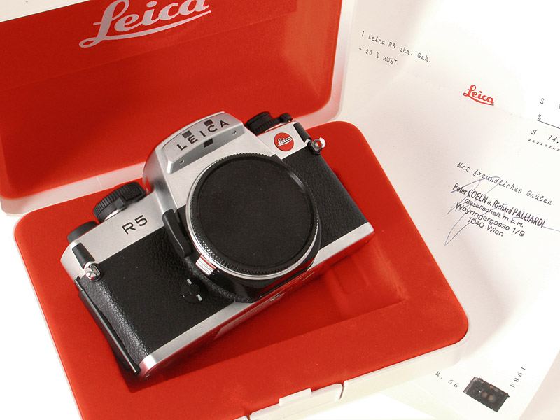 R5 chrome in mint condition, in maker's box with papers, original sales invoice by Leica Shop Vienna, dated 28.August.1992
