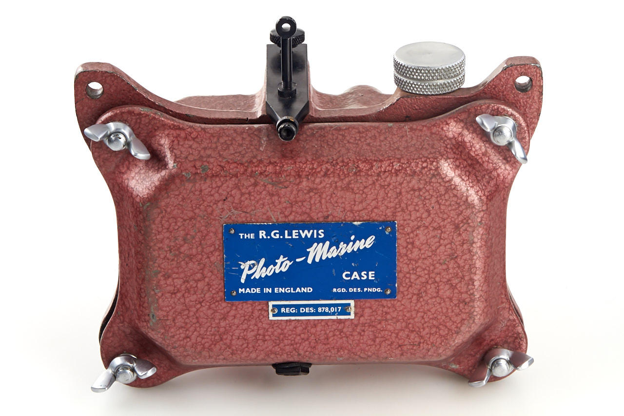 very rare heavy metal underwater housing for Leica IIIc - IIIf by R.G. Lewis in England, with strap and accessories for mounting the camera