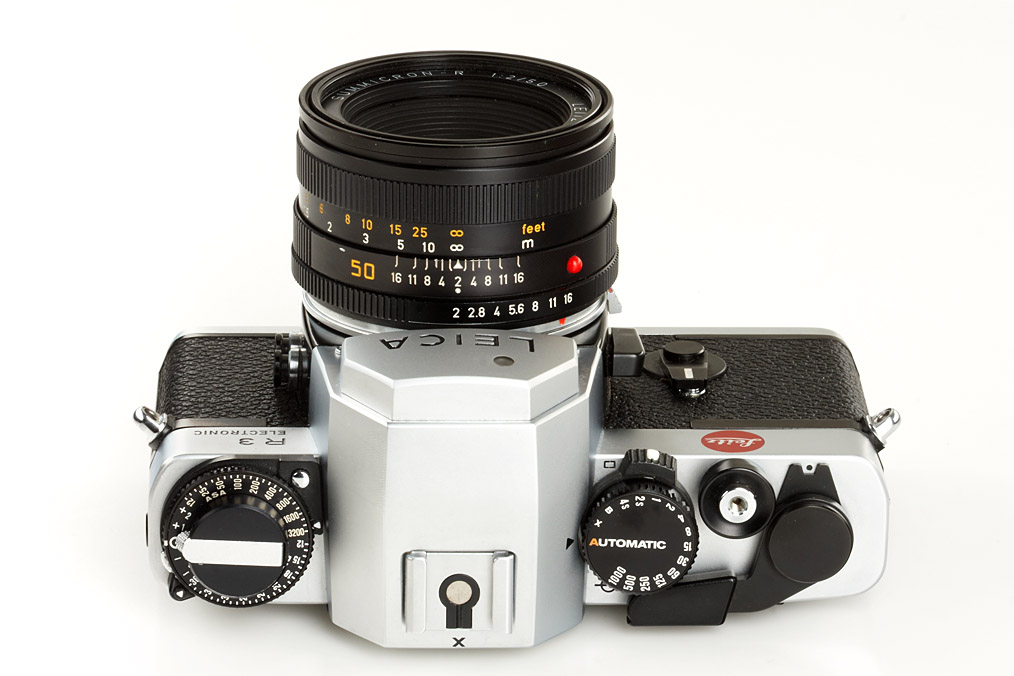 one of the very first cameras produced (camera no.4), Made in Germany, in original condition (meter not working), with early 3-cam Summicron-R 11215 2/50mm no.2779001 from the first batch (different front engraving), cap