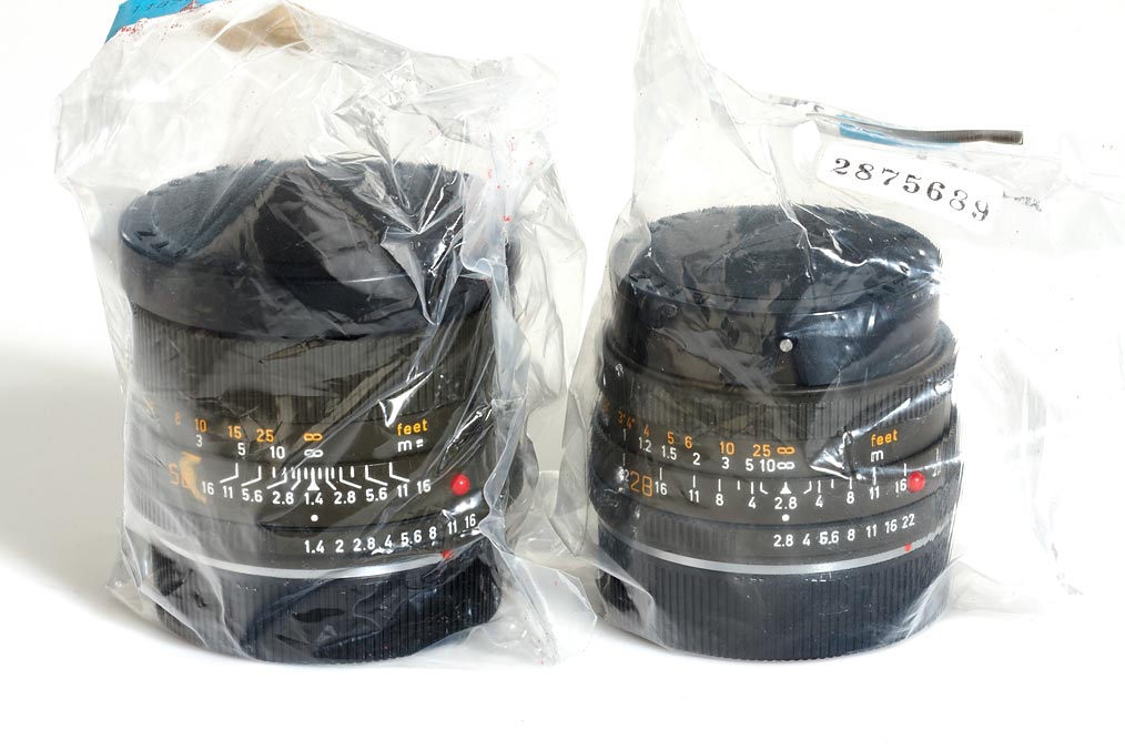 brand new R3 outfit including olive body (special number C878), olive Summilux 1.4/50mm no.2900498 (second type), olive Elmarit-R 2.8/28mm no.2875789 (hood), all items are sealed in plastic with papers and maker's boxes