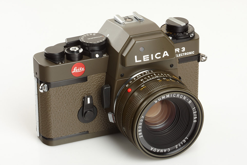 mint Safari outfit including olive body no.1482418 (special no.A-641), Elmarit-R 2.8/28mm no.2921681, Summilux-R 1.4/50mm 11877 no.2901580, Summicron-R 2/50mm no.2880059, Elmar-R 4/180mm no.2921915 - lenses mint with maker's boxes, olive hard-plastic case, papers