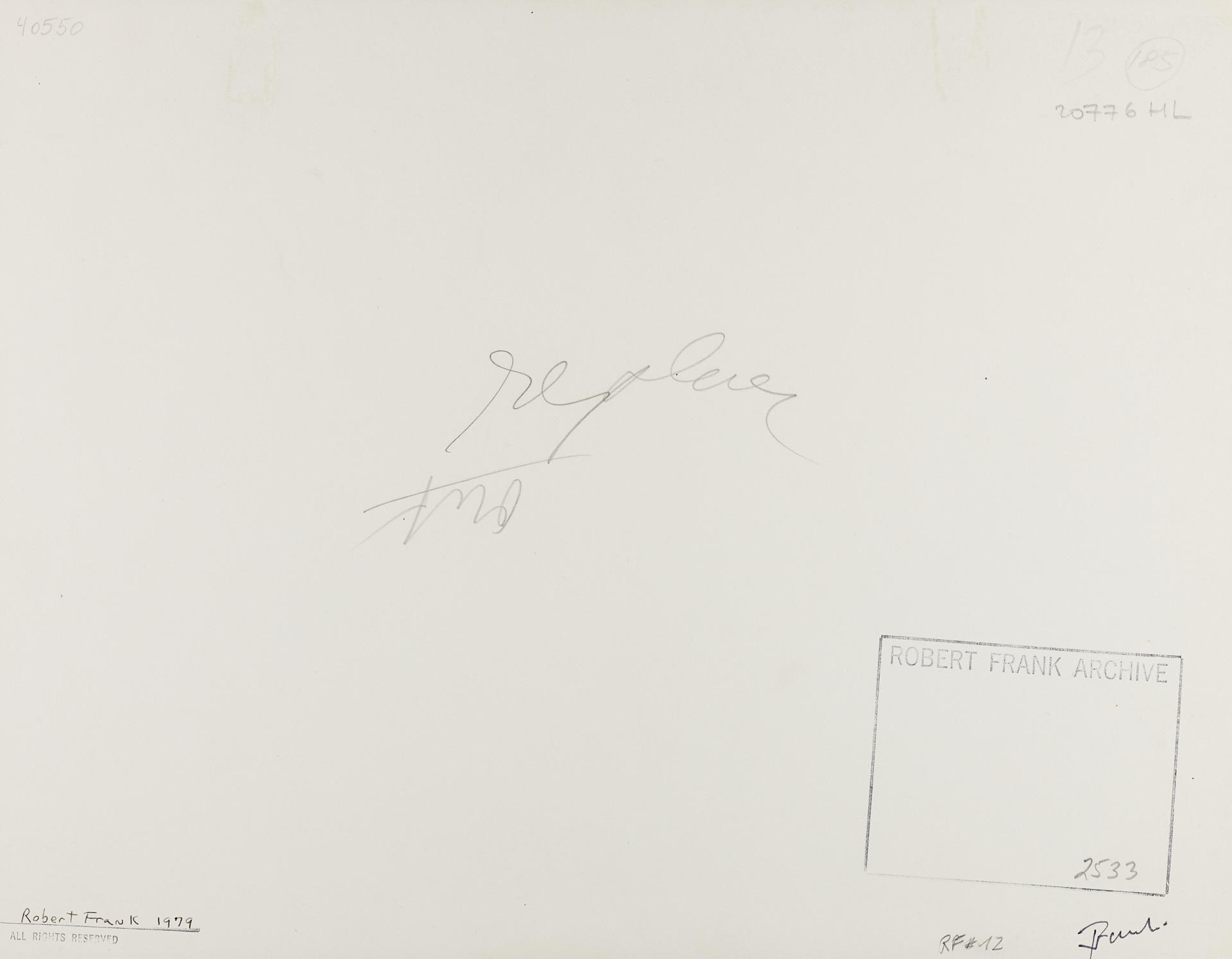 Gelatin silver print, printed before 1979 23,8 x 30,8 cm Signed and dated (annotation date) by the photographer in ink on the reverse, archive stamp and copyright stamp on the reverse Before returning to the United States in March 1953, Frank undertook an intimate exploration of the life of miners in Caerau, Wales, on the advice of Edward Steichen. There, Frank lived with miner Ben James and his family for several days, photographing James as he worked, ate, even washed in a small basin in his home. LITERATURE Sarah Greenough / Philip Brookman (eds.), Robert Frank. Moving Out, Zurich 1995, p. 85 (same series); Robert Frank, The Lines of my Hand, Zurich 1989, s.p. (same series).
