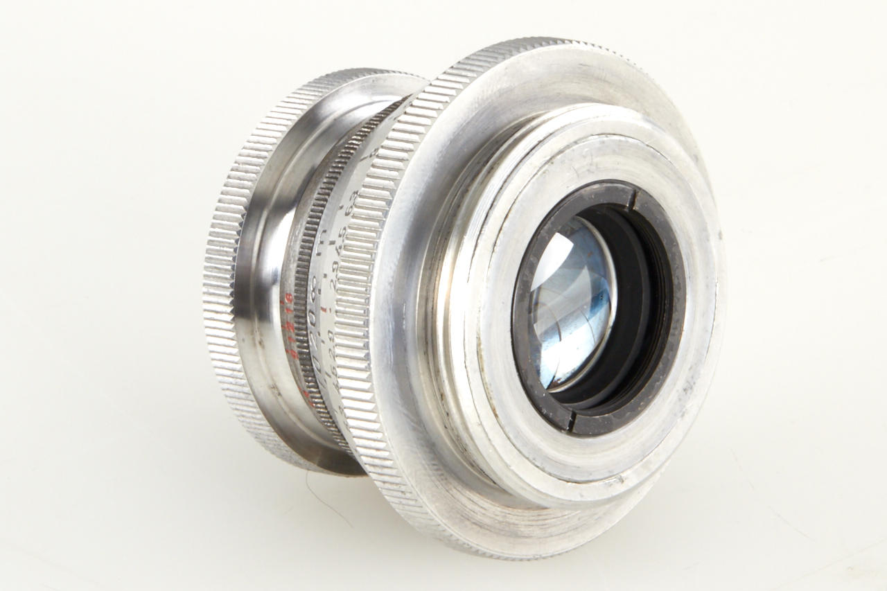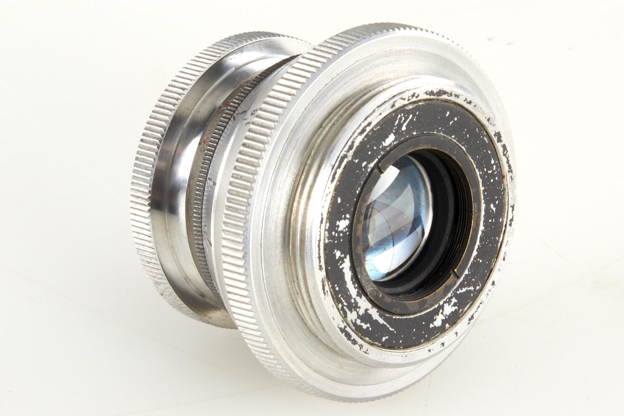 2 very rare standard lenses for the German SLR Vormbruck Feca, 37mm rear thread mount, serial number 10004 and 10029, later lens with red dots marking the aperture position