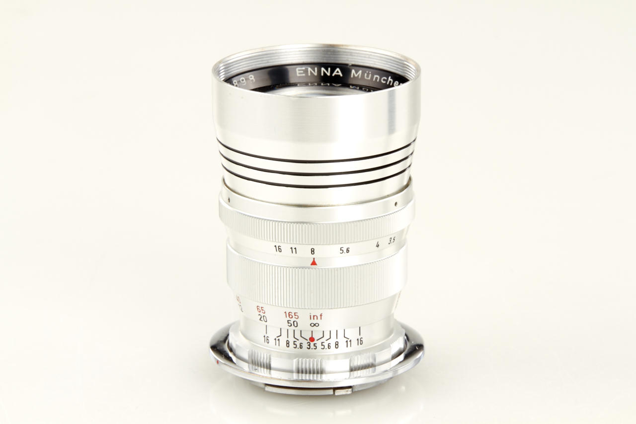 Enna Tele-Ennalyt 3.5/135mm no.3201898 (very rare lens for Rectaflex in perfect condition, Rectaflex cap), Rectaflex vario hood (48mm), rare Rectaflex microscope adapter SAMIC (3)