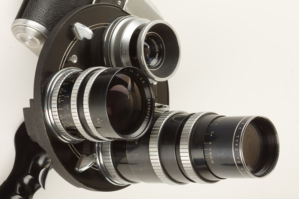 Rotor outfit with 3 Angenieux lenses (type R1 2.5/35mm no.411938, type Z2 2.9/50mm no.179482, type Y2 3.5/135mm no.478945, all with caps)