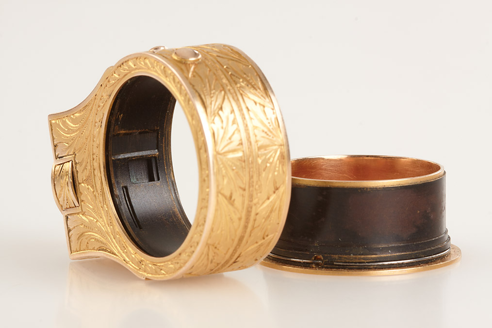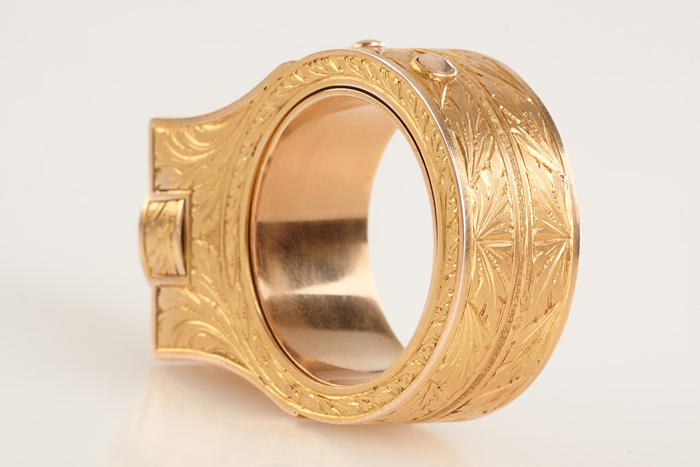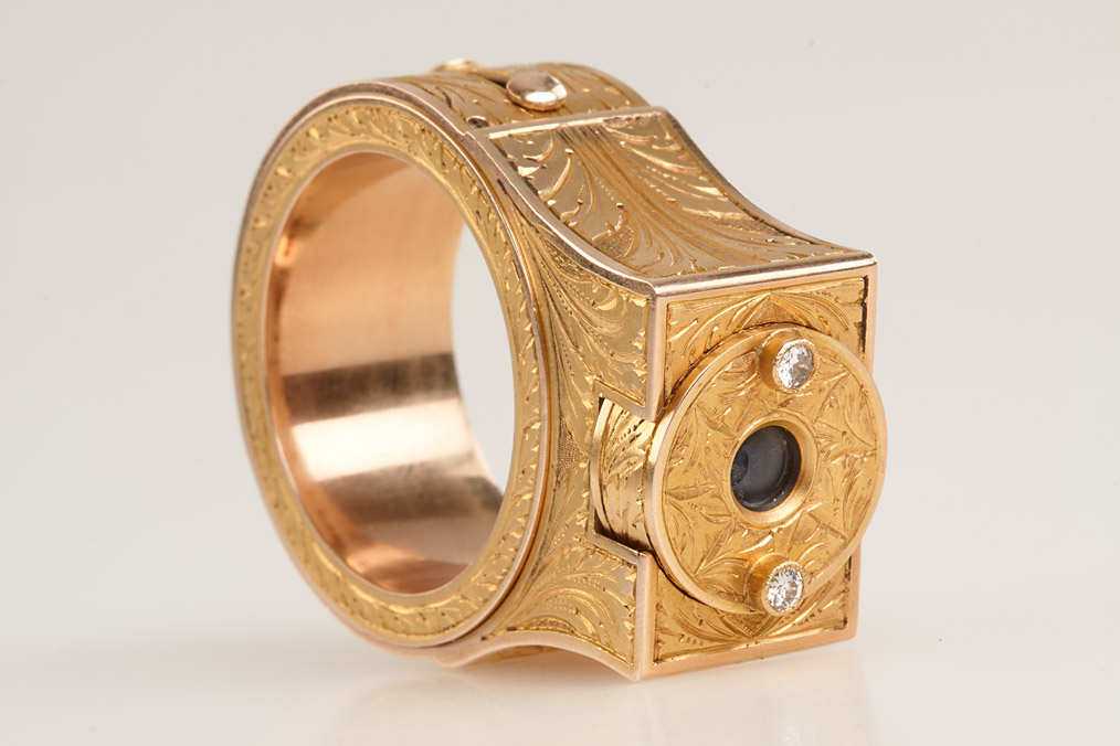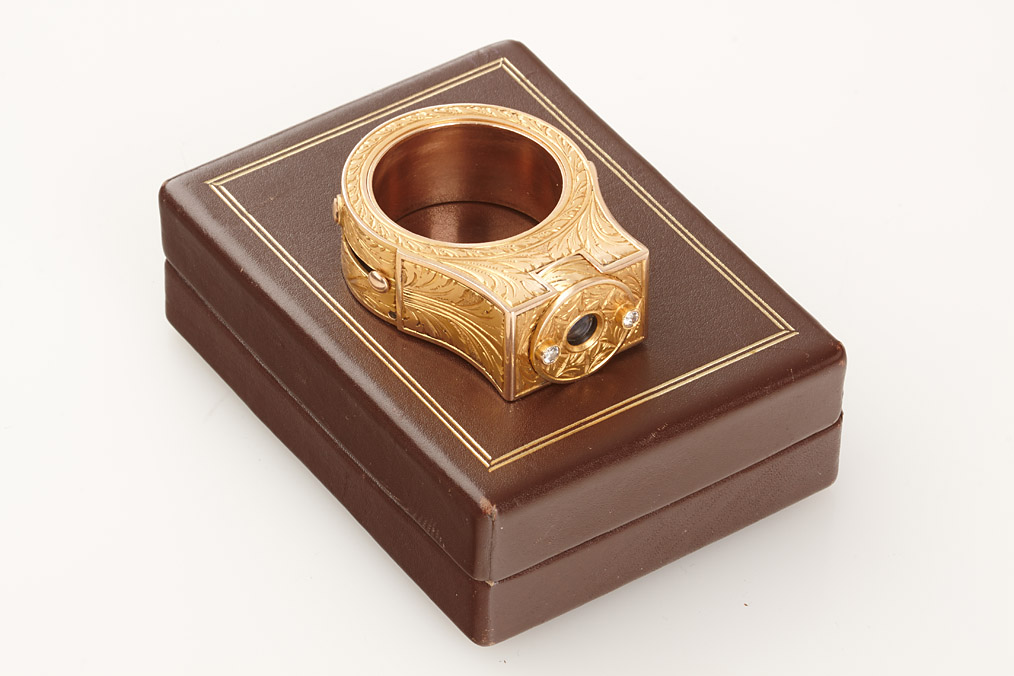 massive gold (65g) ring camera in near mint condition and working order, for 8mm film, according to the previous owner it was presented to Nikita Chruschtschow - including Fotoforum magazine 04/2011 with an article about the Werner Umstätter collection