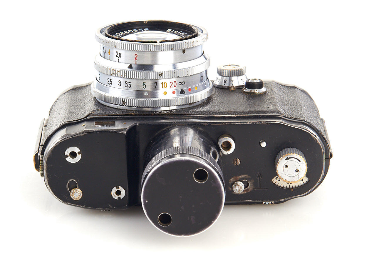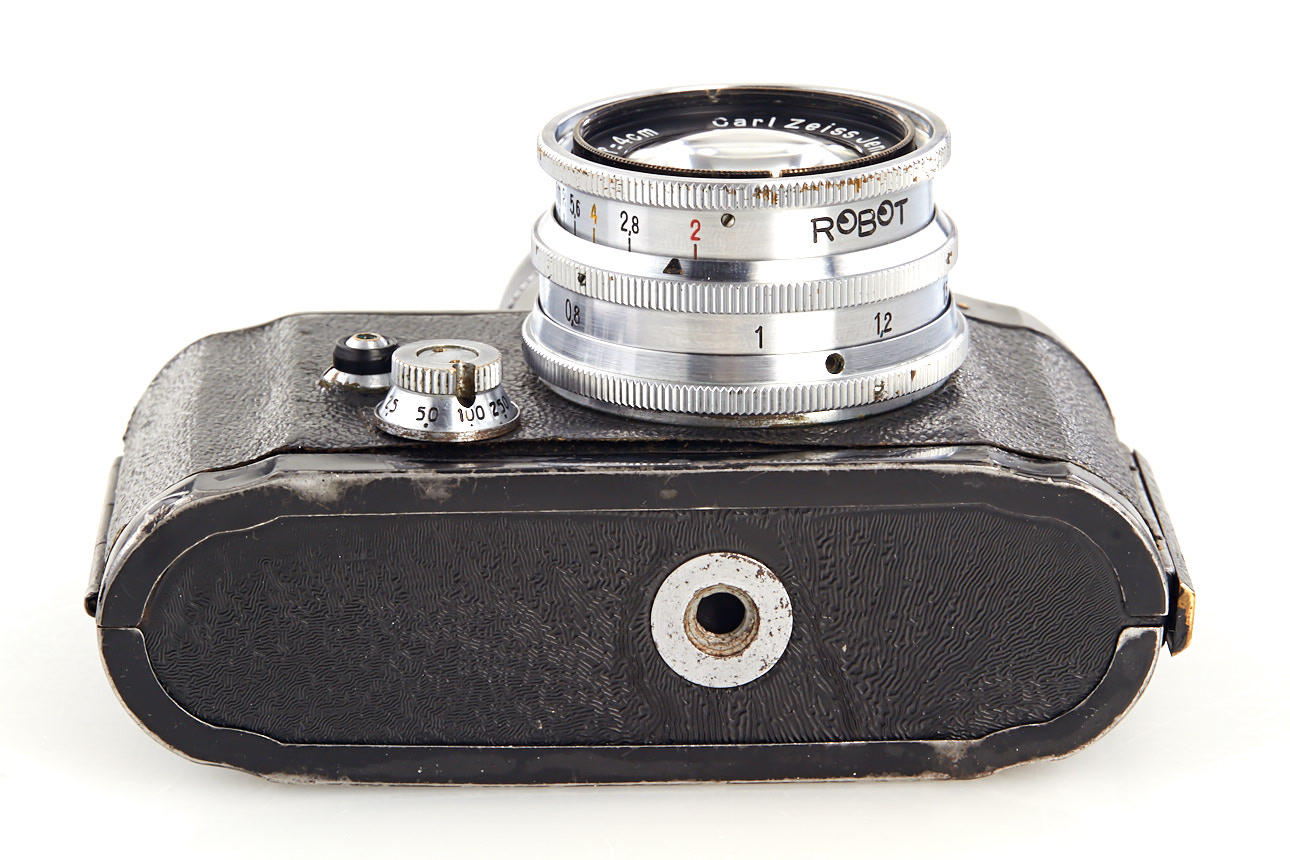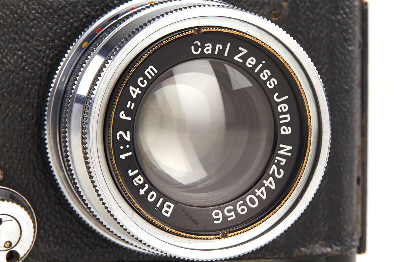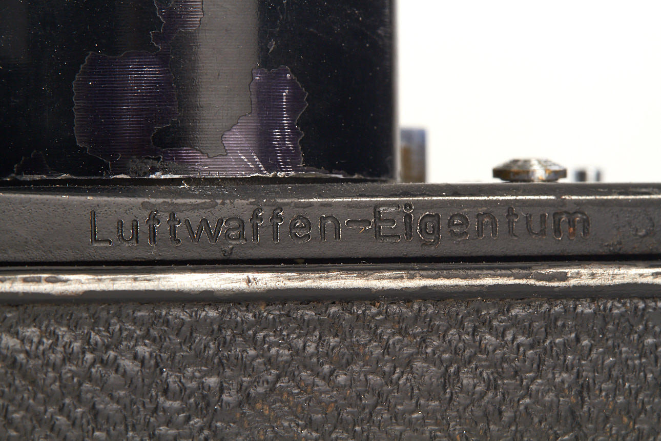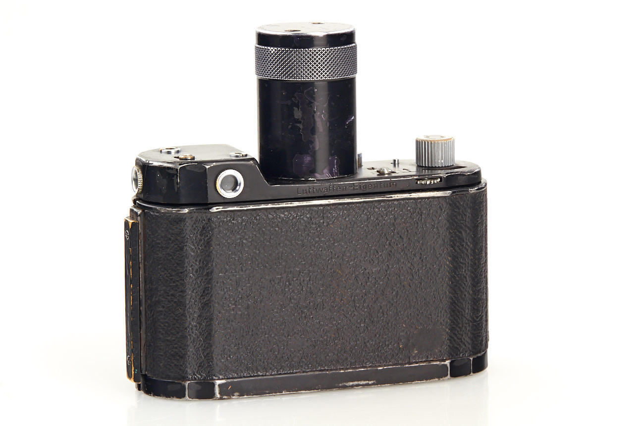 black painted Robot with high double spring for use in German air fighters during WWII, matching Carl Zeiss Jena Biotar 2/4cm no.2440956, engraved near the mount with 'Luftwaffen-Eigentum'