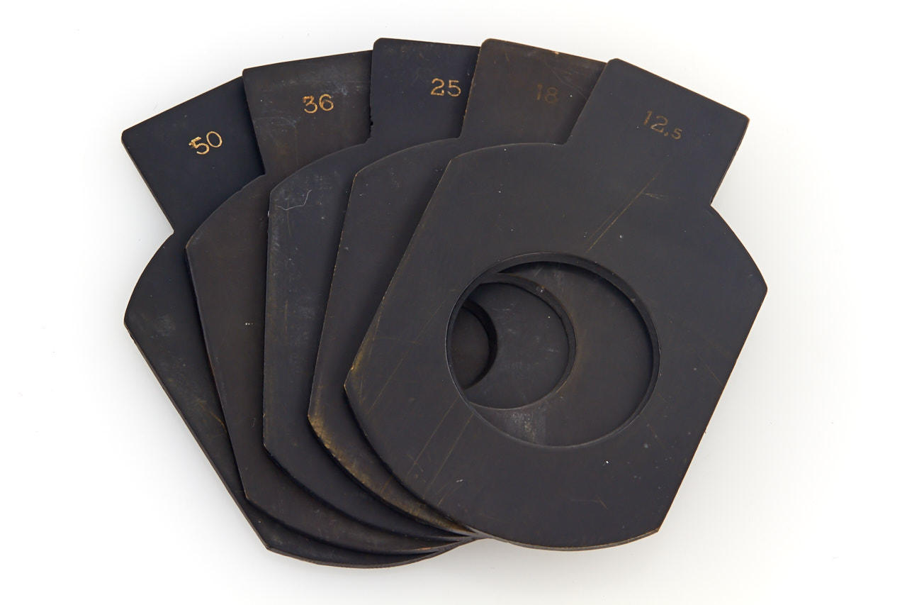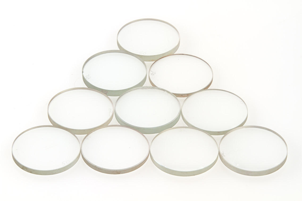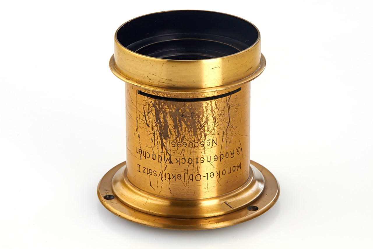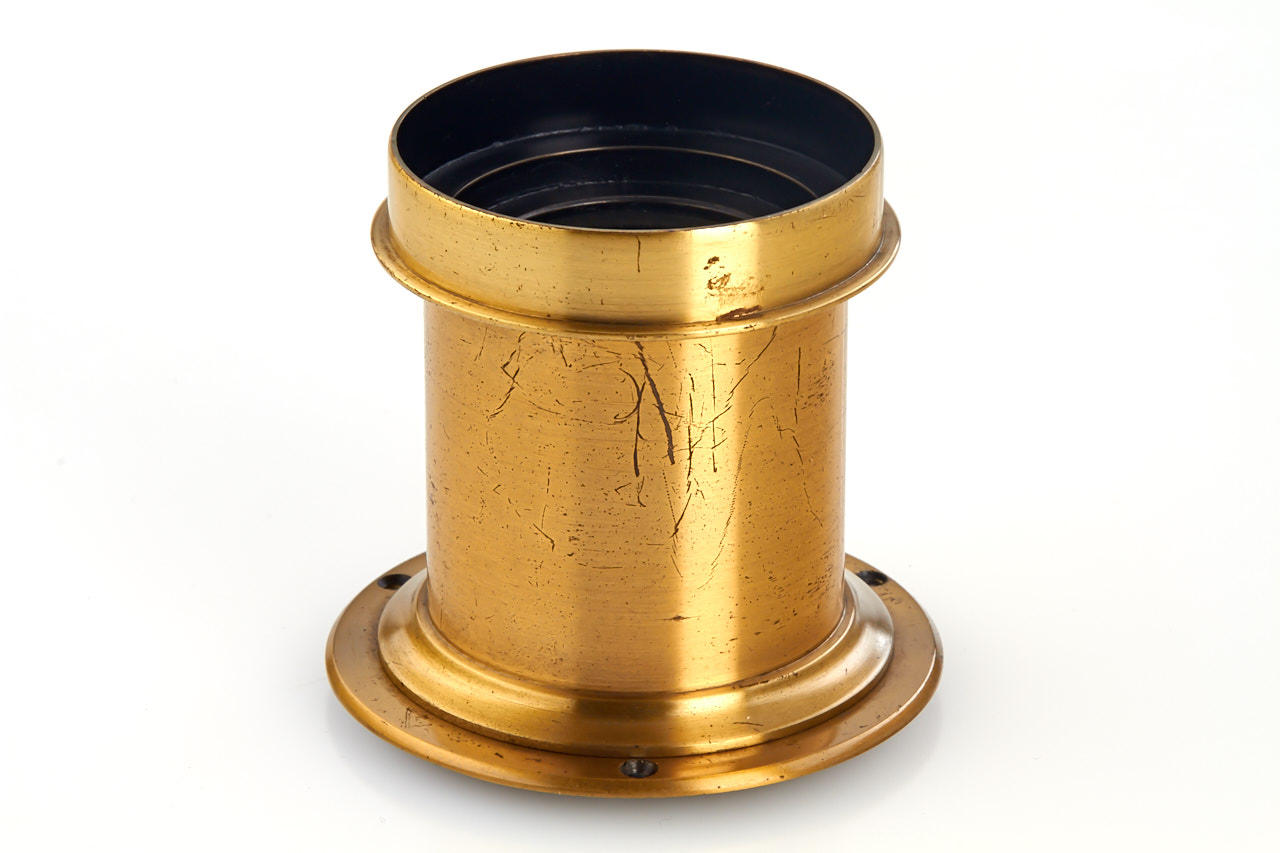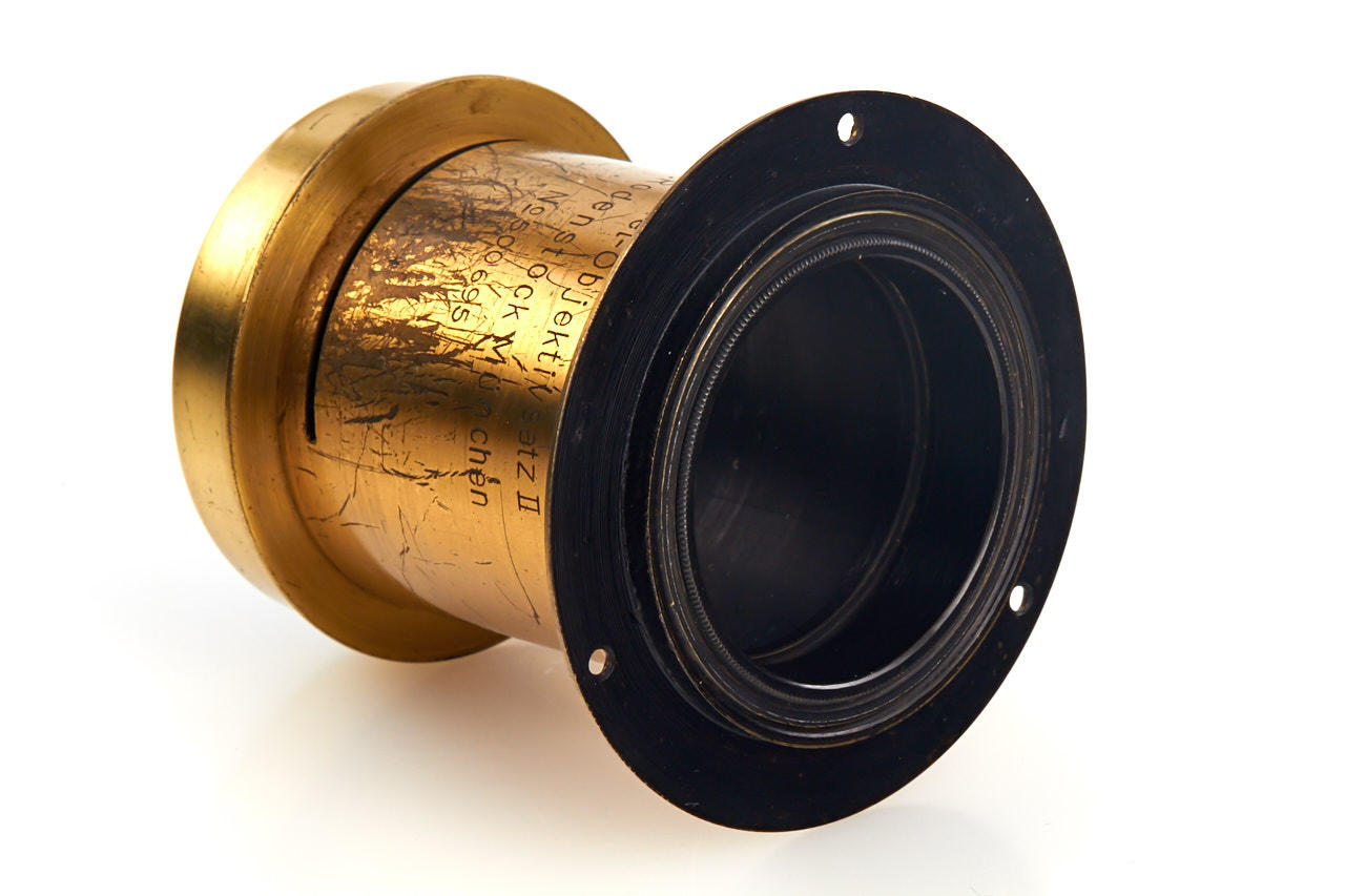 very rare lens set with brass lens housing (6cm high), complete set of 10 simple interchangeable optics in various focal lengths (all in very good condition, diameter 38mm), five Waterhouse stops, with mounting ring and fitted box for the set