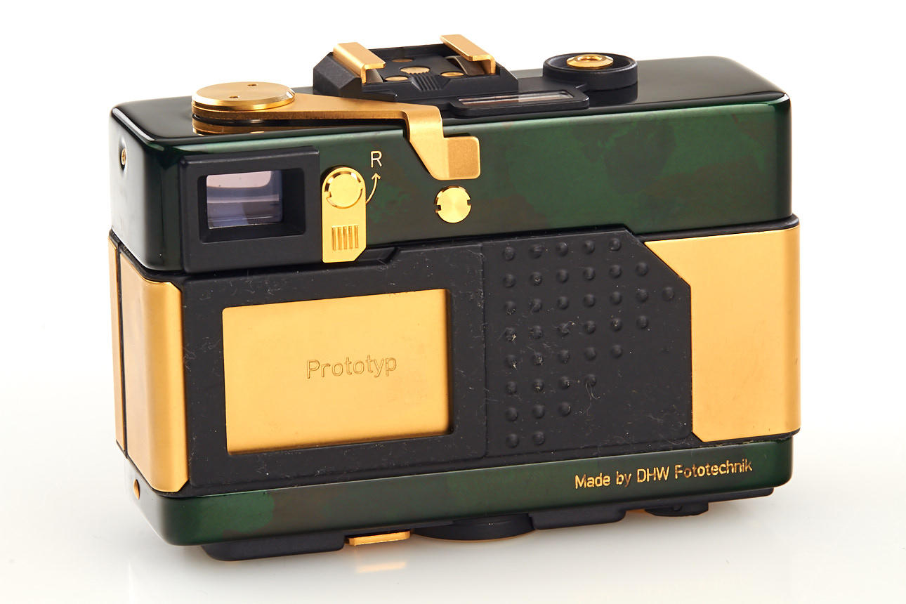edition prototype Made DHW Fototechnik in green/gold 'Urushi' finish which never went in production, in like new condition with S-Apogon 2.8/40mm HFT lens, engraved 'Prototyp' on rear, with cap, in wooden presentation box