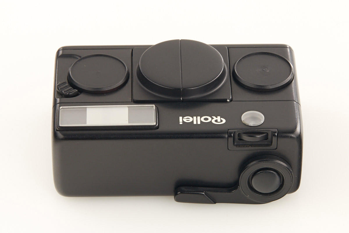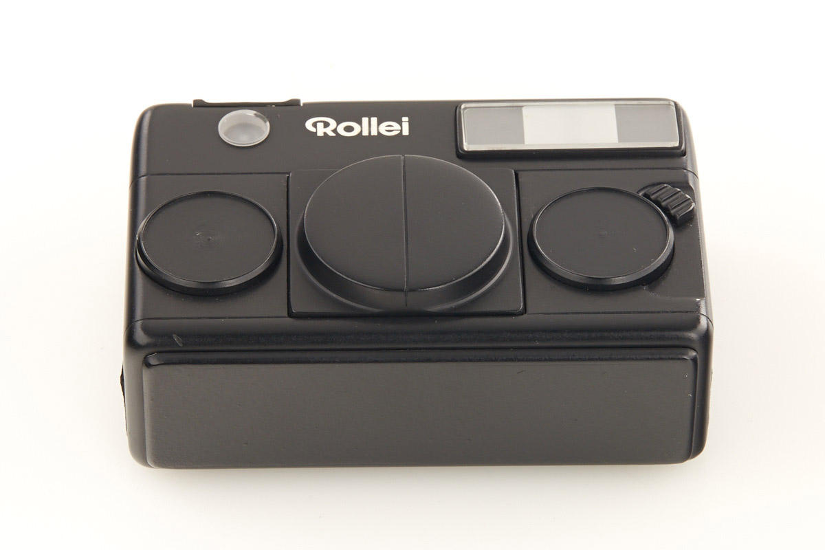 wooden dummy of the Rollei 35 System camera which never went into production, in near mint condition, back with leather covering, a lot of differences to the previous Rollei 35 design (folding front door, focusing wheel, etc.), similar prototypes are illustrated in Claus Prochnow Rollei Report 3, p.714-717