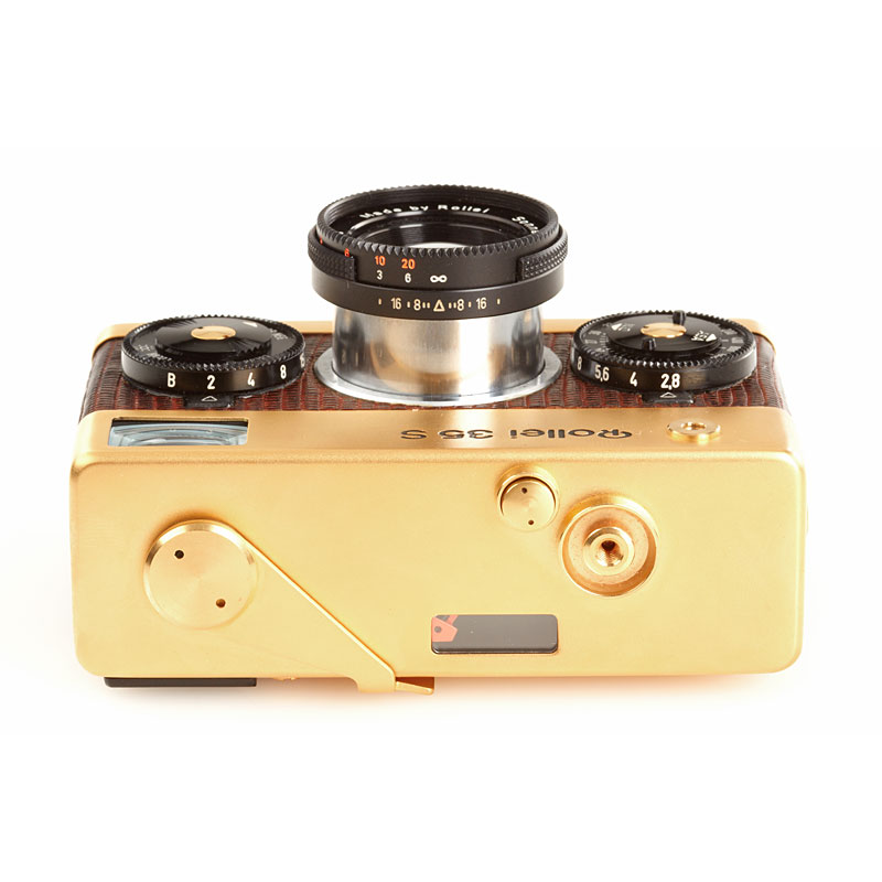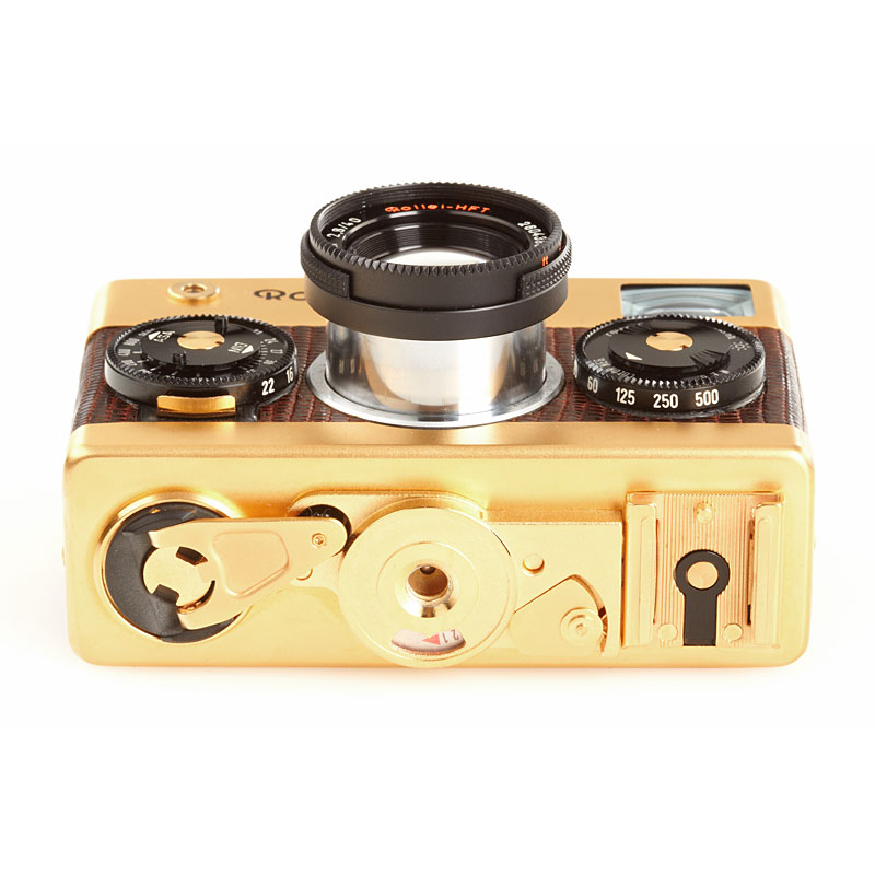60 Year Anniversary Camera with 24 carat gold plating, limited edition of 1500 cameras, Sonnar 2.8/40mm no.2604383, lizard skin case, cap, strap, instructions, wooden presentation box